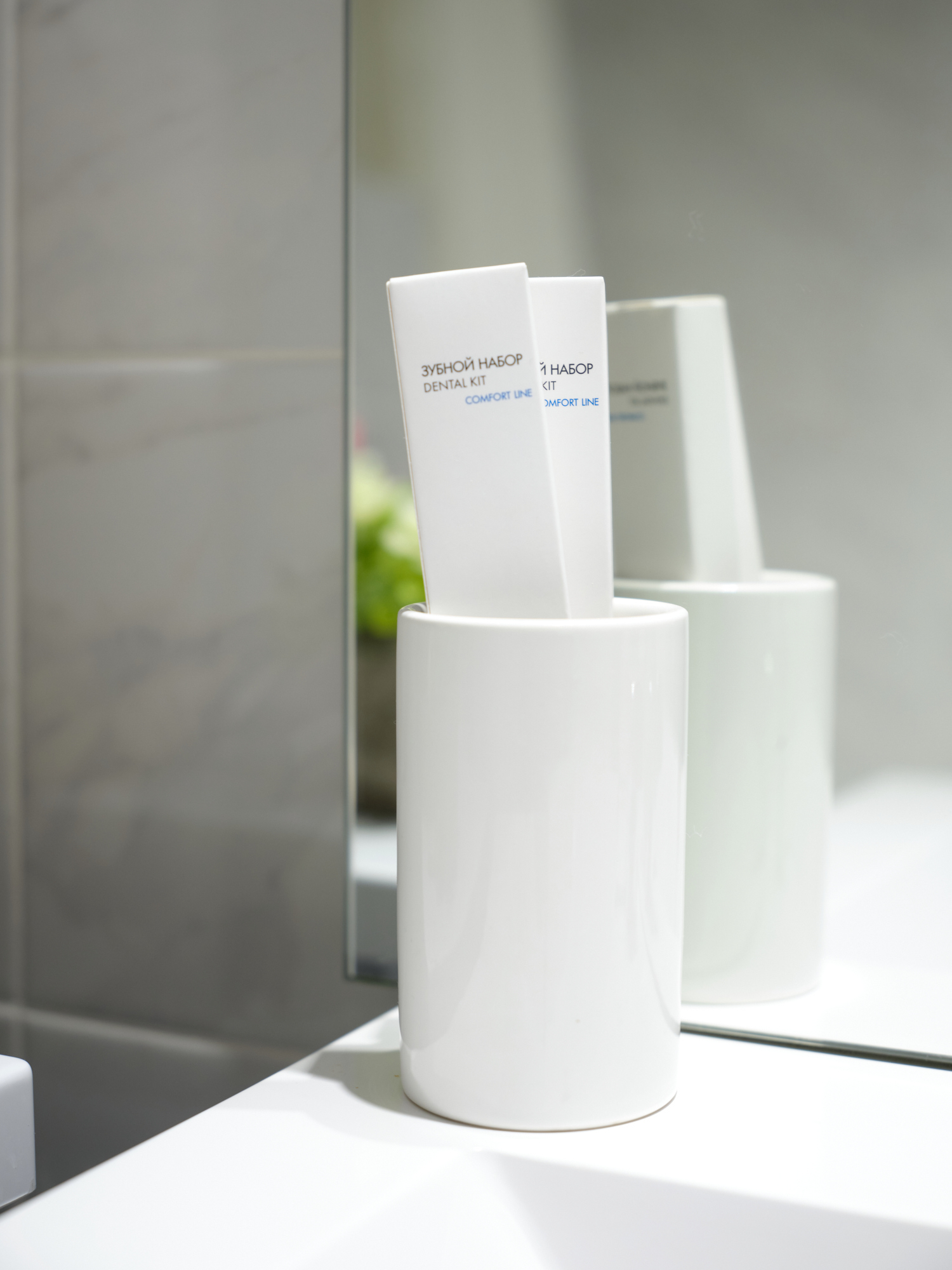 все необходимые косметические принадлежности (зубные наборы, шампунь, гель для душа, кондиционер).