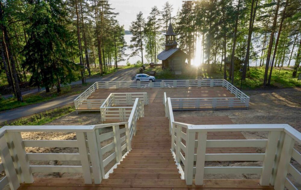 Глэмп-отель«Террасы» расположен на берегу Большого Симагинского озера, в 30 минутах езды от Санкт-Петербурга. Идеальное место для отдыха в окружении природы. На территории эко-парка расположена действующая часовня Иннокентия Иркутского. Расстояние до аэропорта Санкт-Петербурга составляет 81 км.