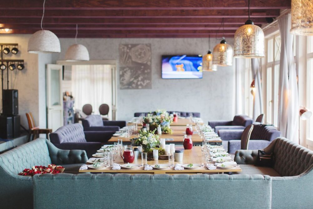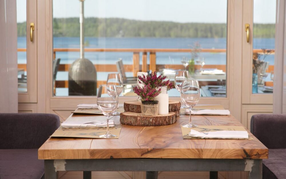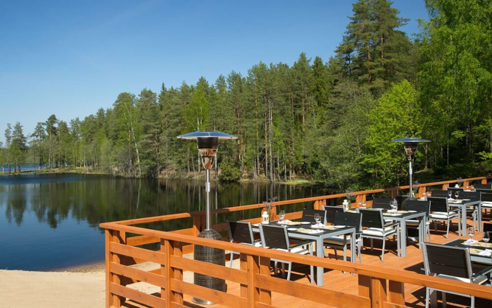 На территории эко-парка работает Ресторан «Вереск» с панорамным видом на сосновый лес и озеро. По выходным и праздникам мы приглашаем в гости музыкантов, шоуменов и артистов, чтоб разнообразить ваш вечер, развеселить или создать романтическое настроение. Также на территории отеля работают внесезонный банкетный зал «Линтула» и летний банкетный зал-шатер «Вереск».
