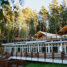 На территории расположен культовый ресторан «Вереск», эко-тропы, пиццерия лавка, детская анимация и многое другое.