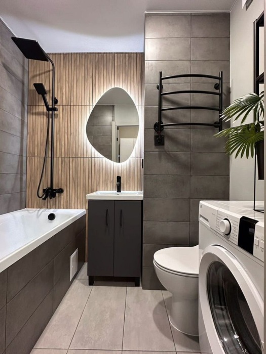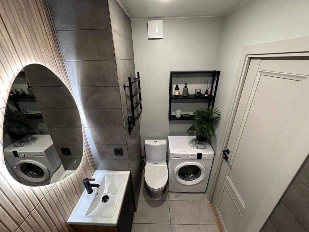 Оснащение квартиры: двуспальная кровать и односпальный диван, ТВ, СВЧ печь, варочная поверхность, холодильник, стиральная машинка, фен, электрический чайник, утюг, шкаф, стол со стульями, чай, кофе, шампунь, гель для душа.