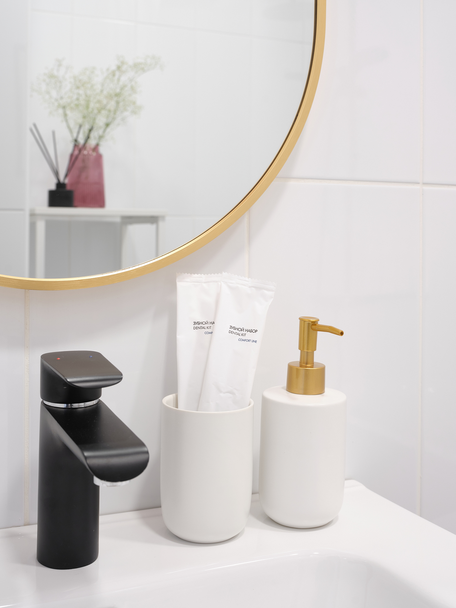 Все необходимые косметические принадлежности (зубные наборы, шампунь, гель для душа, кондиционер).