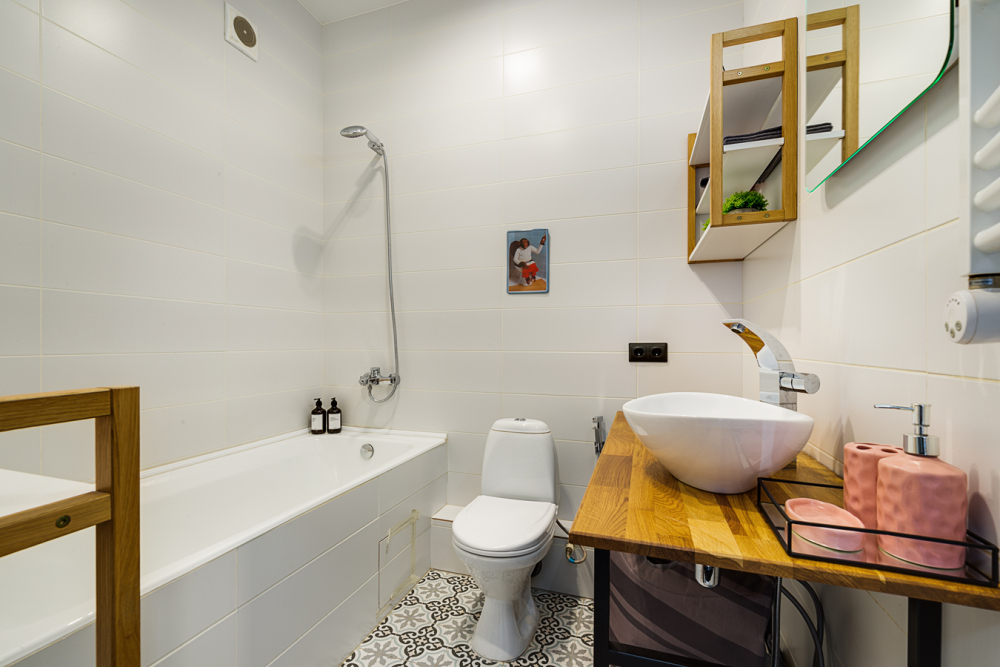 2 отдельных санузла: в одном ванна, раковина и унитаз, во втором раковина, унитаз и душевая кабина.