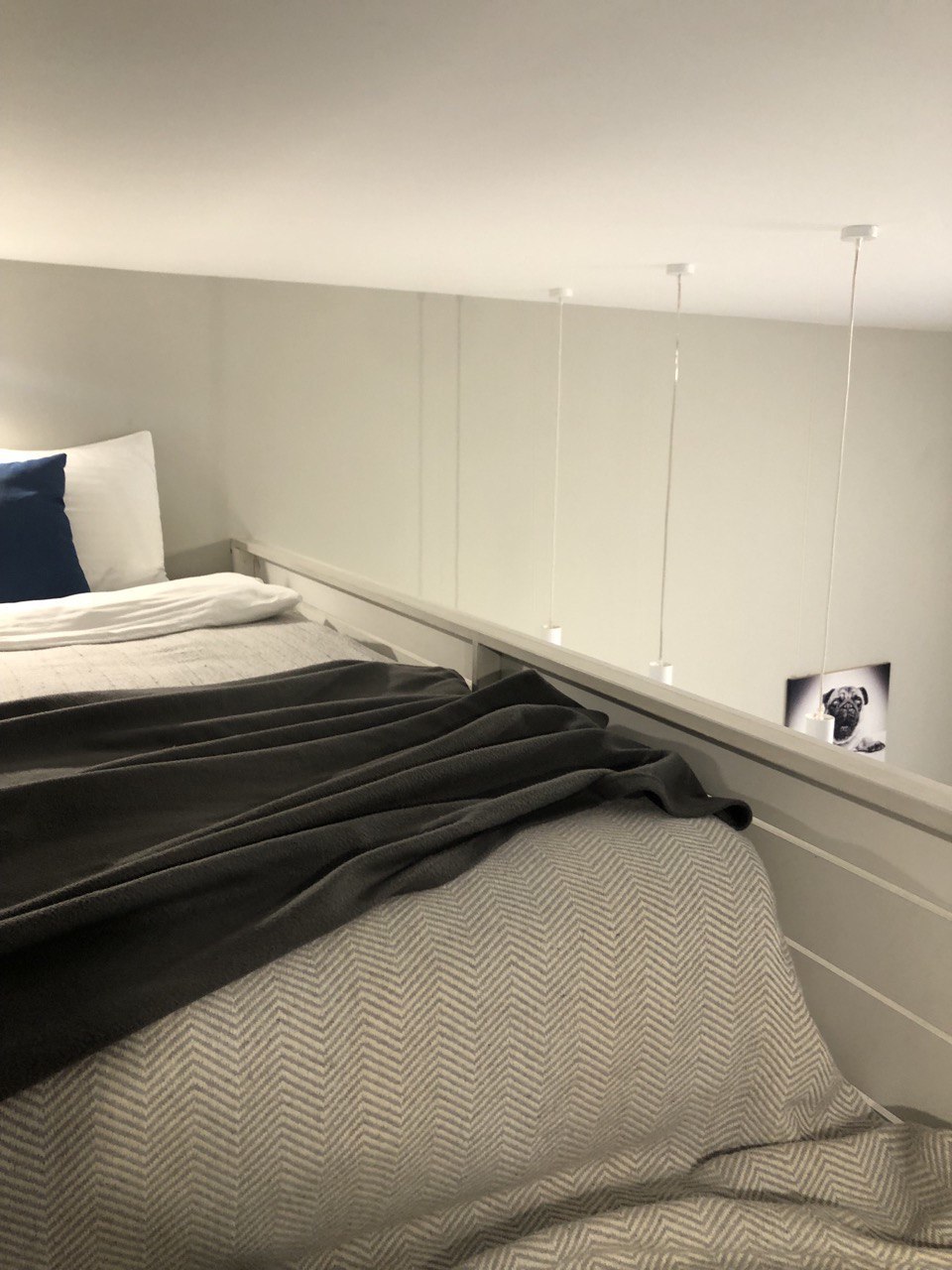 Квартира двухуровневая для 4-х гостей. На втором этаже расположена кровать 160*200. На первом этаже диван-кровать 140*190.