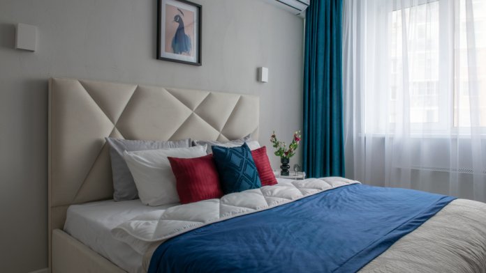 - Удобную двуспальную кровать с ортопедическим матрасом и раскладной диван для двух дополнительных мест.