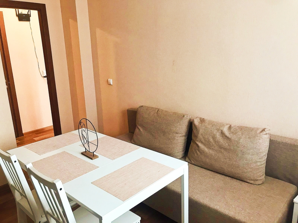 Светлая и уютная квартира, укомплектована всем необходимым для комфортного проживания. В стоимость проживания входят постельное белье, полотенца, средства личной гигиены.
