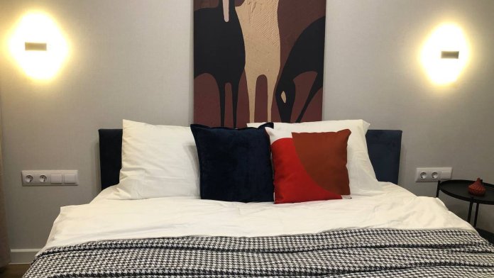 Спальня: 2-спальная кровать 160×200, качественное постельное бельё , шкаф, комод, письменный стол , ТВ, Wi Fi хорошая скорость