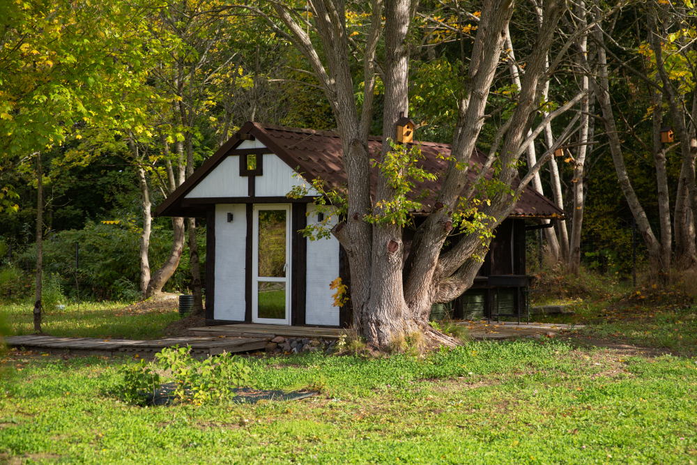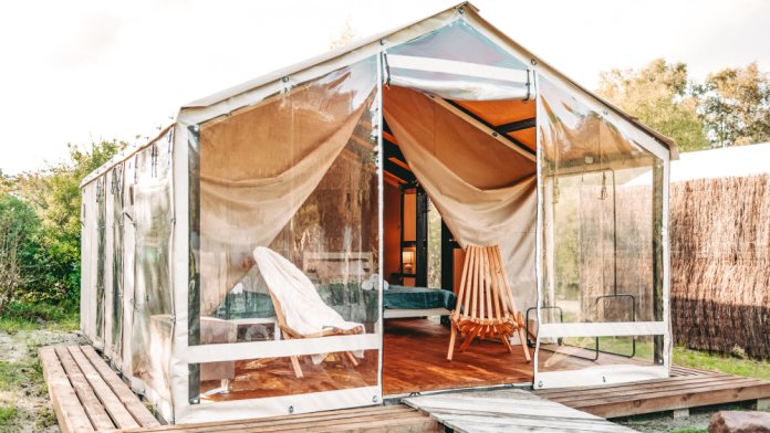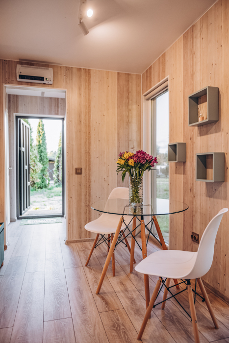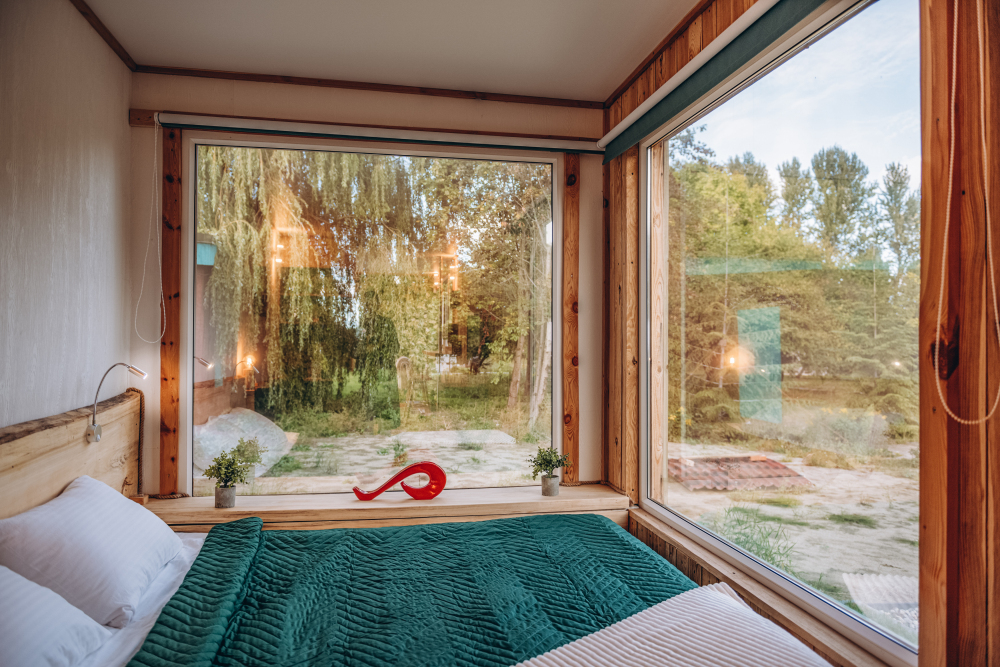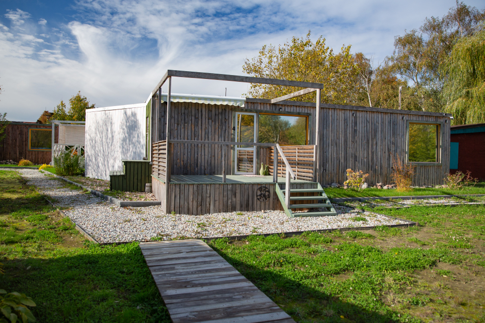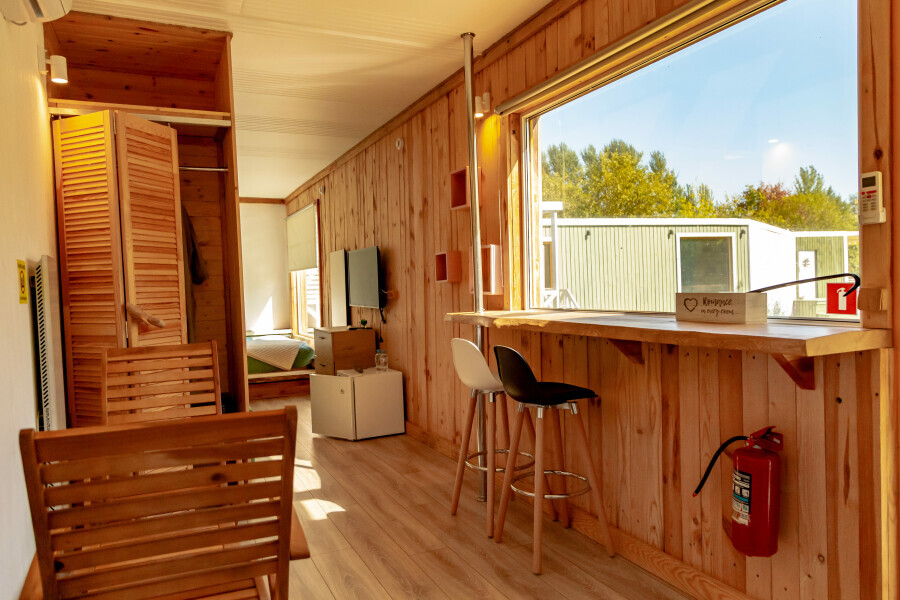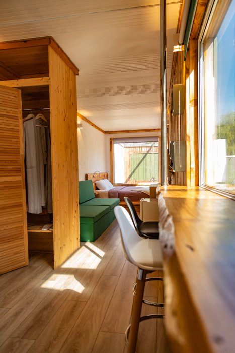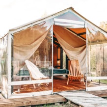 В глэмпинге Вы можете выбрать 2 варианта размещения: модульные дома, которые подойдут для комфортной круглогодичной жизни, и дом-шатер для отдыха летом.