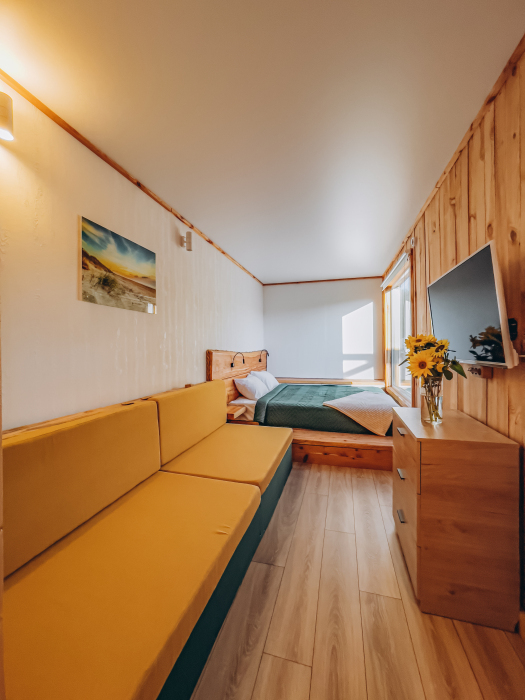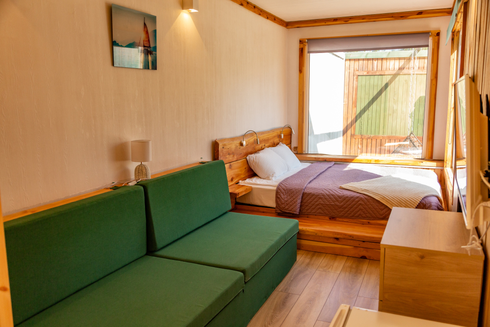 Идеальный вариант для отдыха в летний сезон. В доме прохладно днем и тепло в ночное время. На выбор представлены варианты с двухместной и двумя одноместными кроватями.Площадь 24 m²