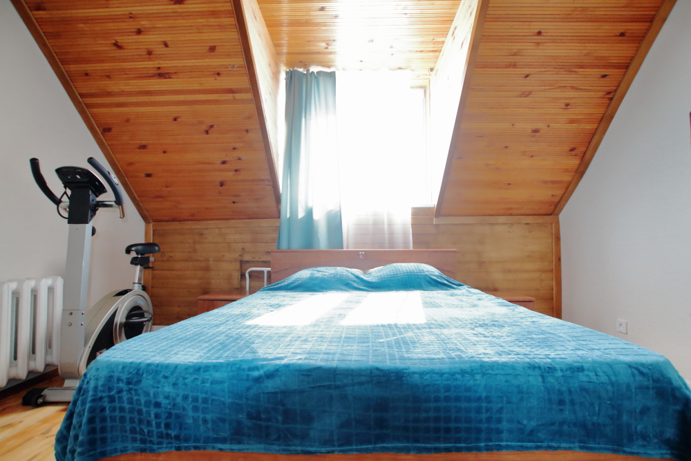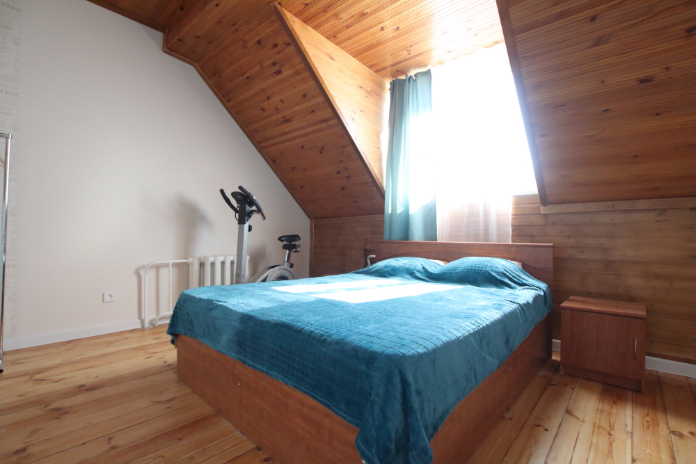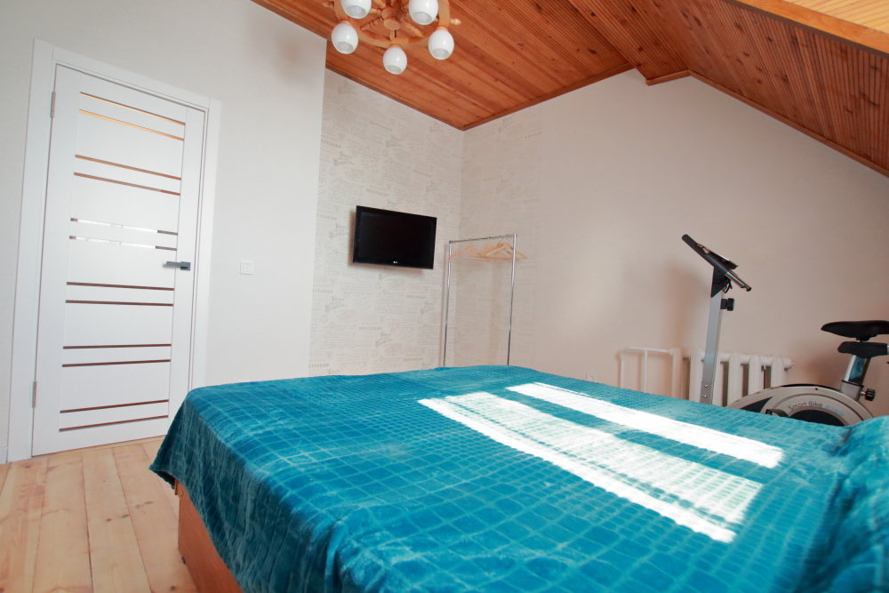 Большая двуспальная кровать с хлопковым постельным бельем очень приятным к телу.