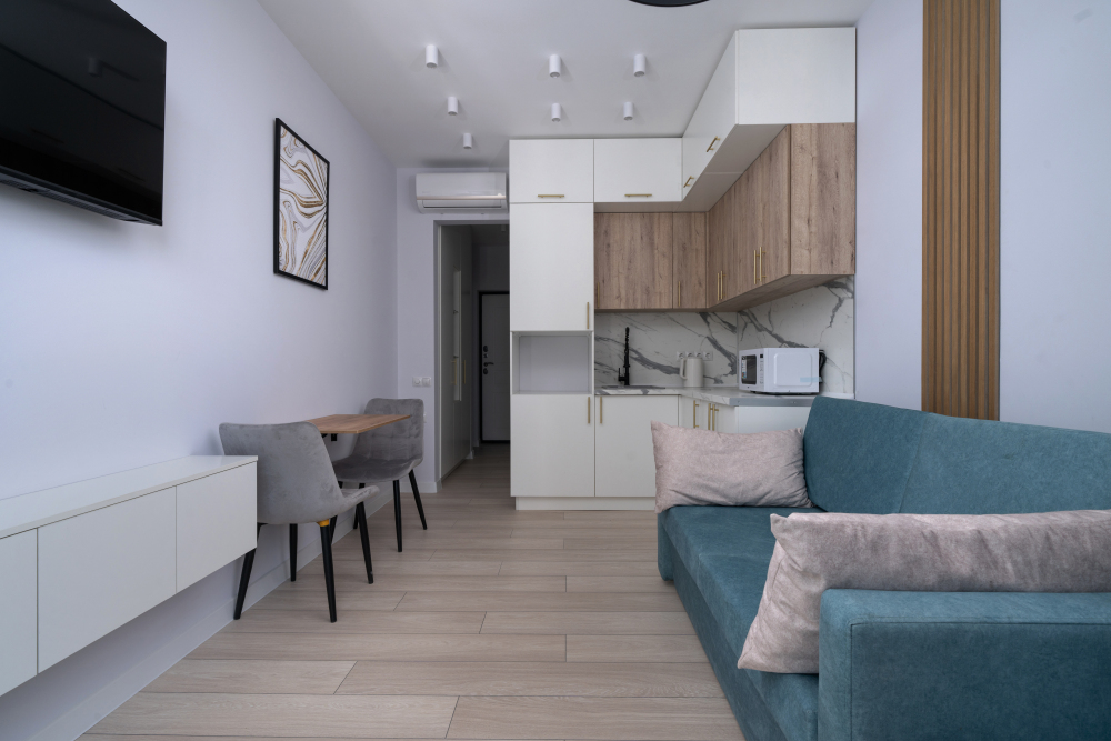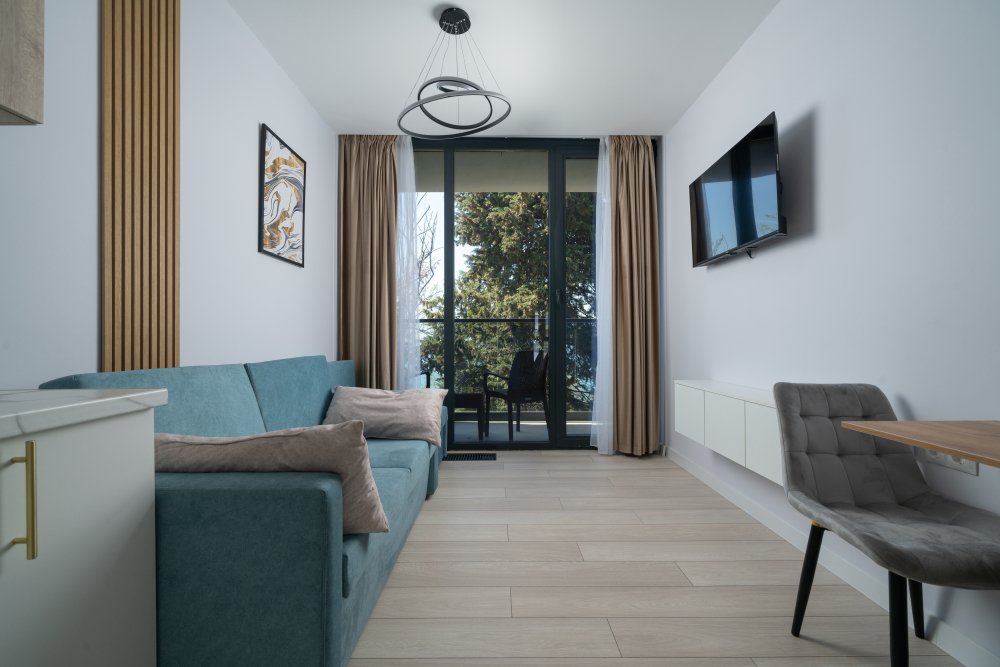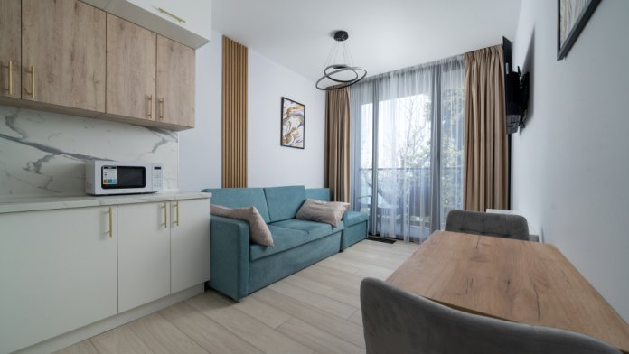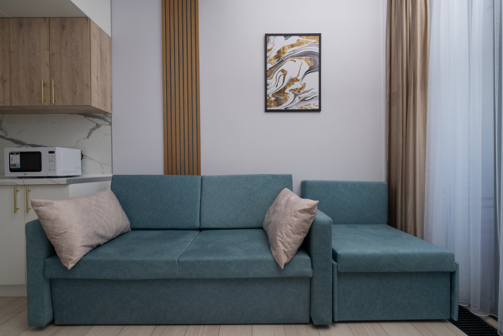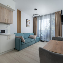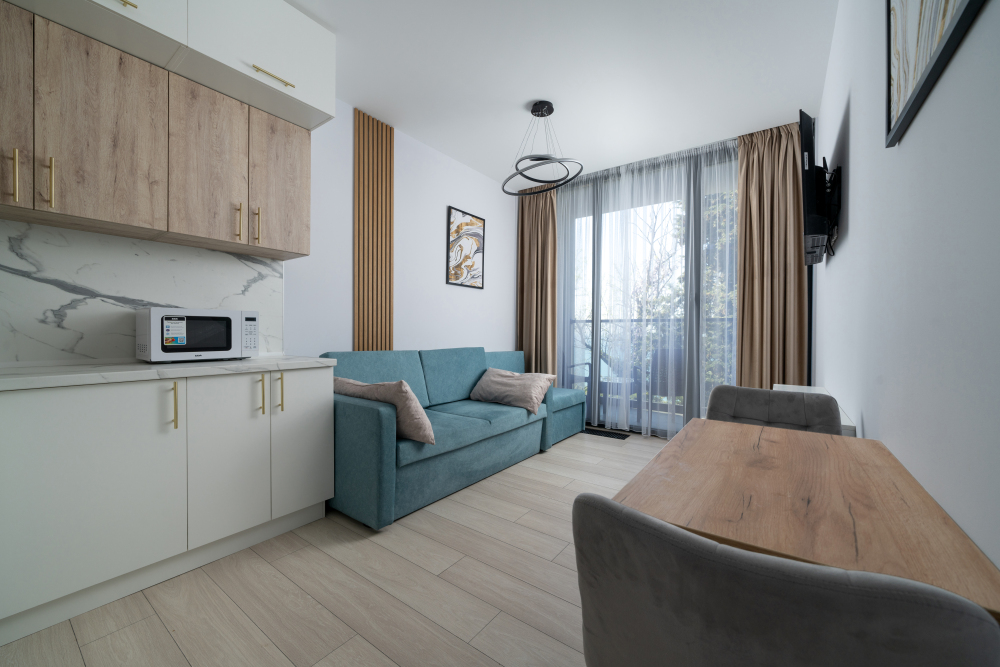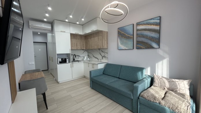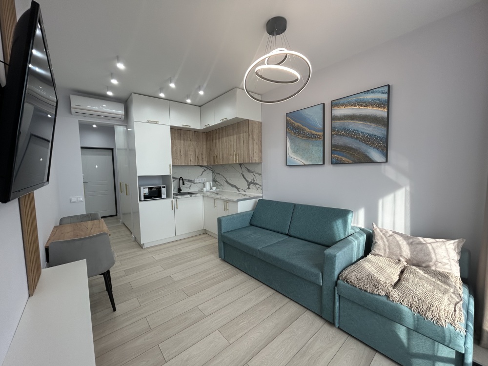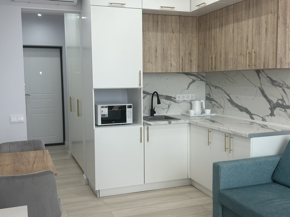 Современные и уютные номера, оснащенные всем необходимым для комфортного проживания. В номере есть кухонная зона с техникой и посудой, удобный двуспальный диван,. Ванная комната оборудована душем и полным набором туалетных принадлежностей. Идеальный выбор для тех, кто ценит комфорт и уединение.