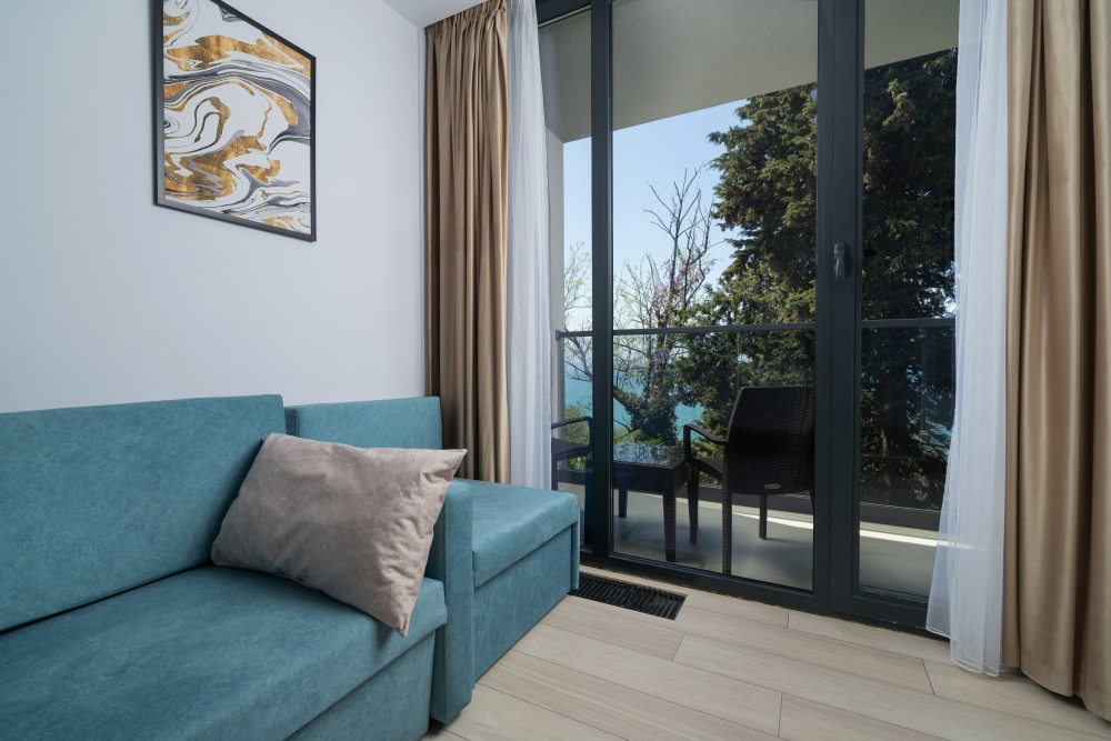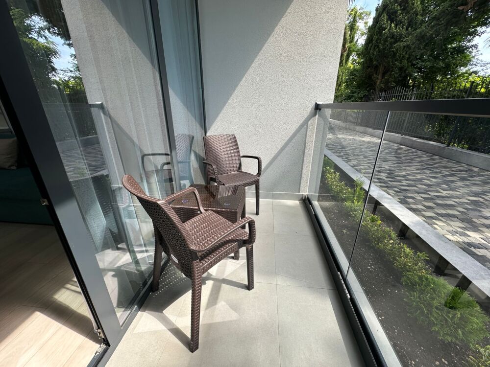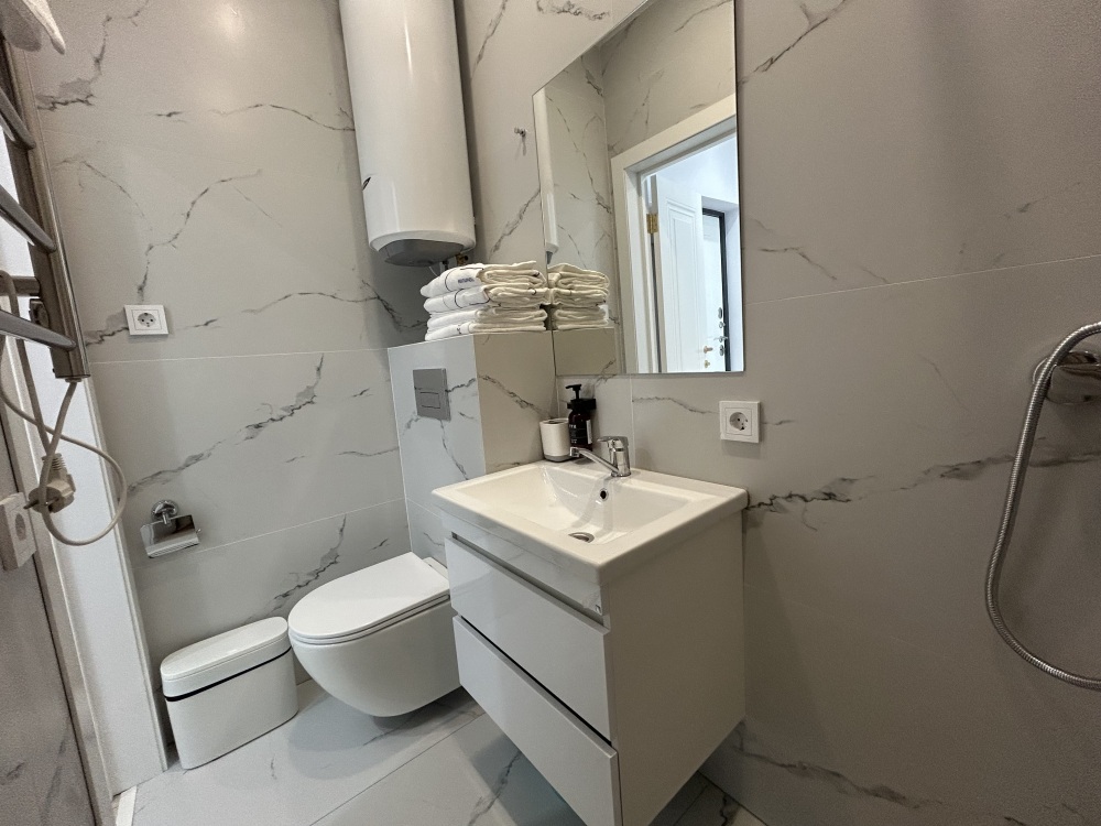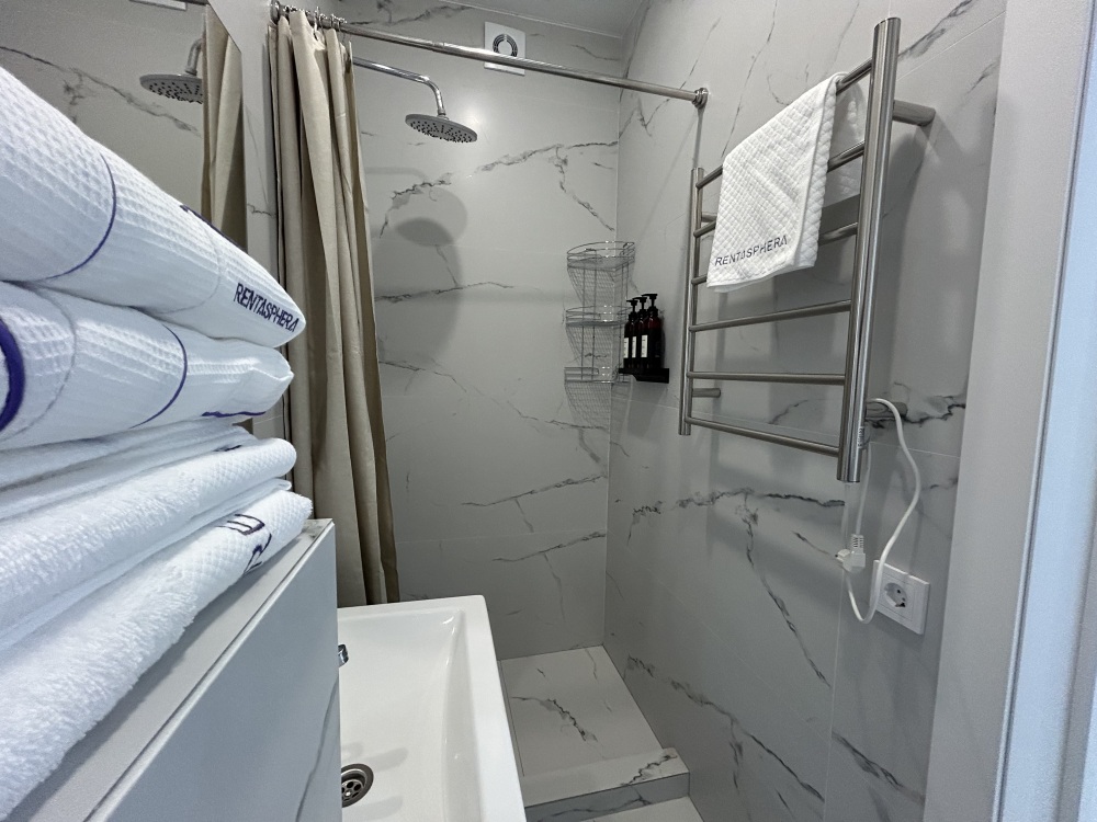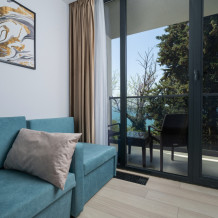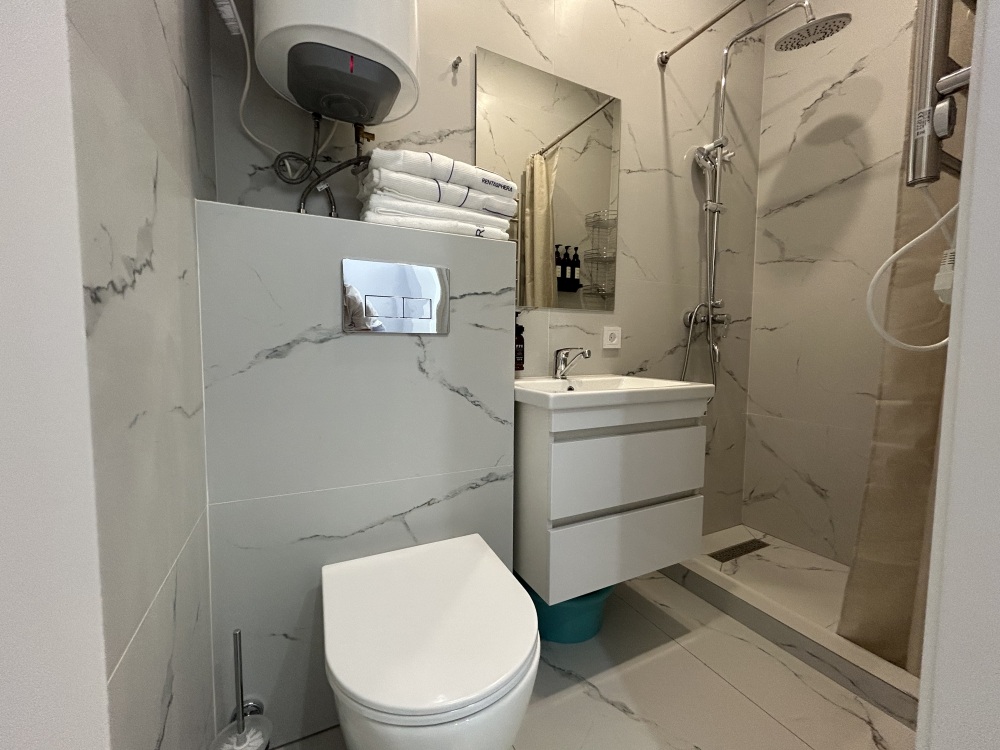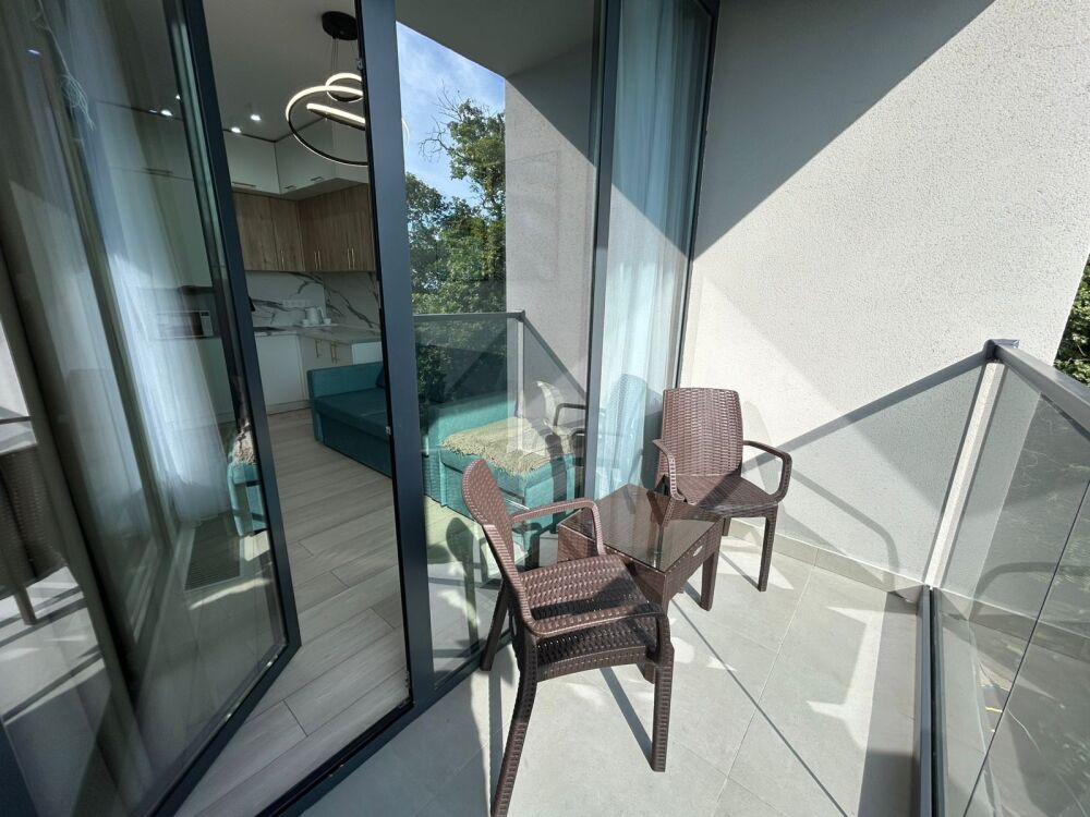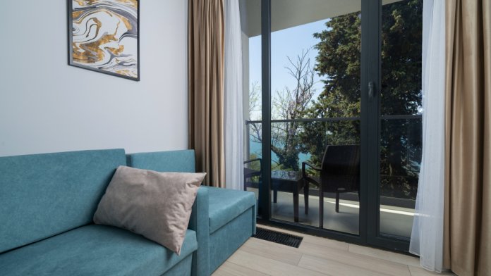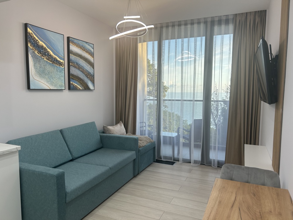 Современные и уютные номера, оснащенные всем необходимым для комфортного проживания. В номере есть кухонная зона с техникой и посудой, удобный двуспальный диван, просторный балкон для отдыха на свежем воздухе. Ванная комната оборудована душем и полным набором туалетных принадлежностей. Идеальный выбор для тех, кто ценит комфорт и уединение.