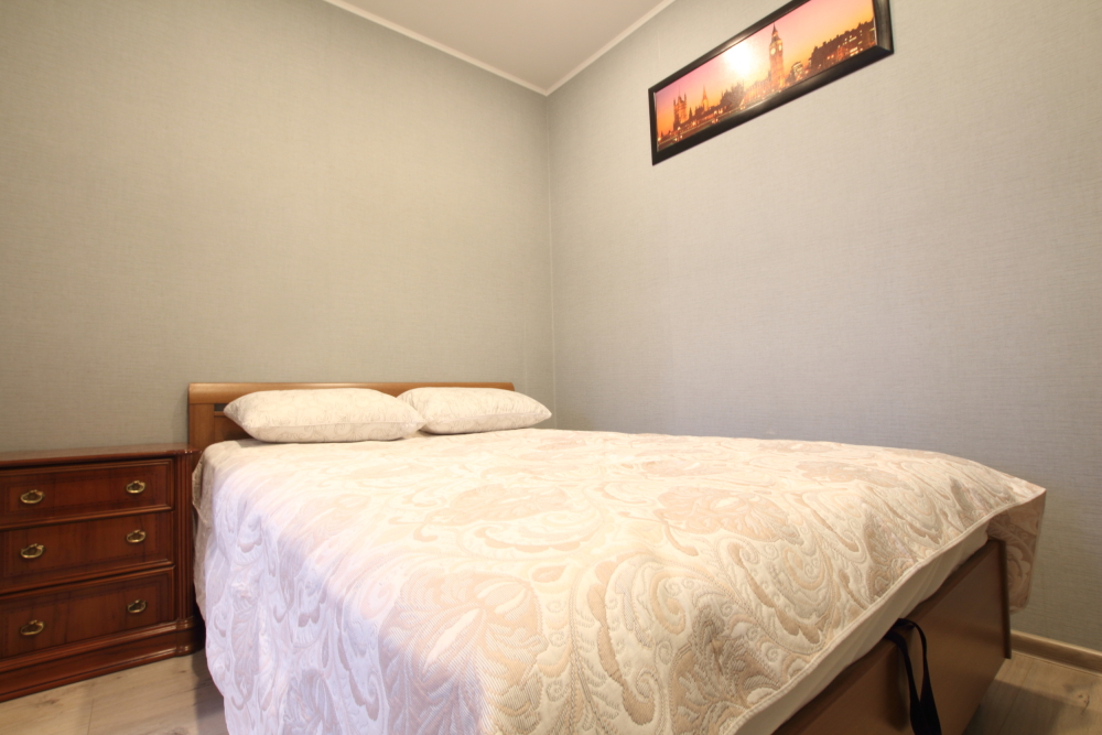 Большая двуспальная кровать с хлопковым постельным бельем очень приятным к телу.