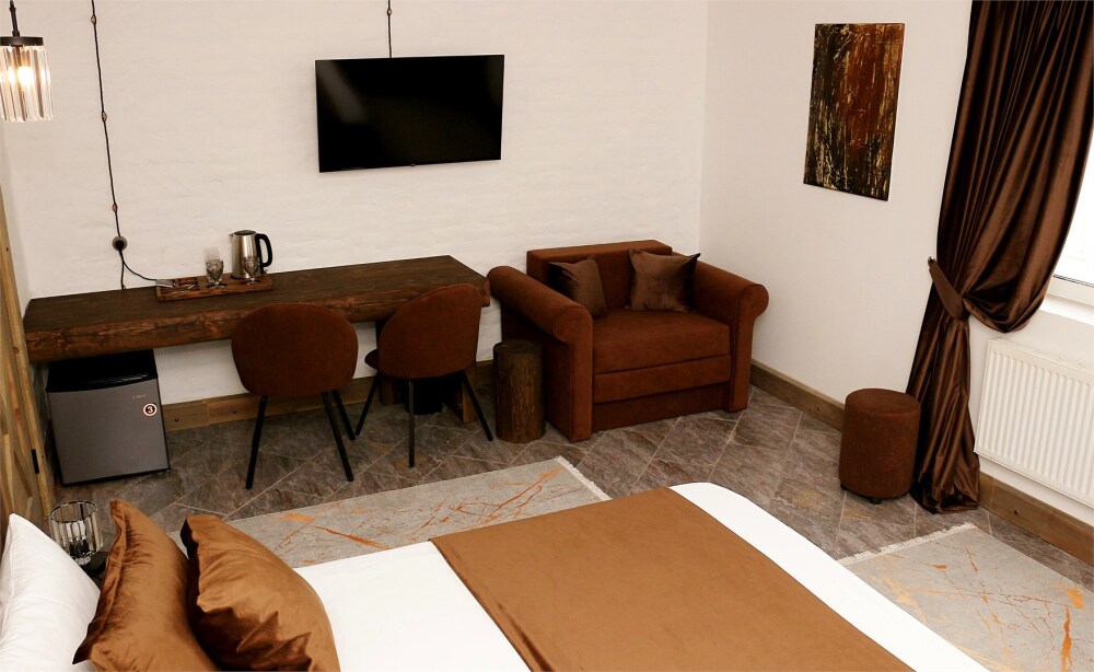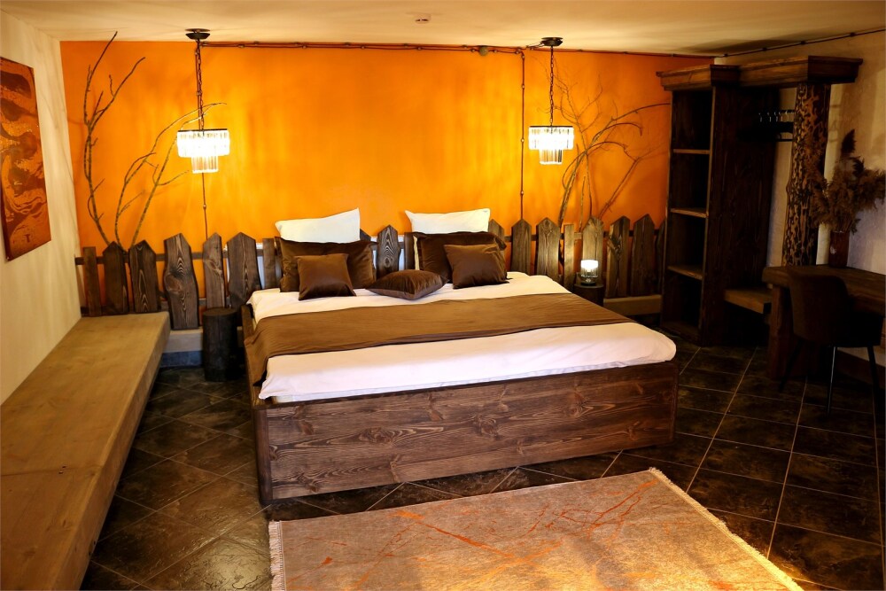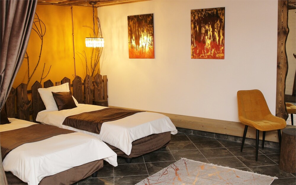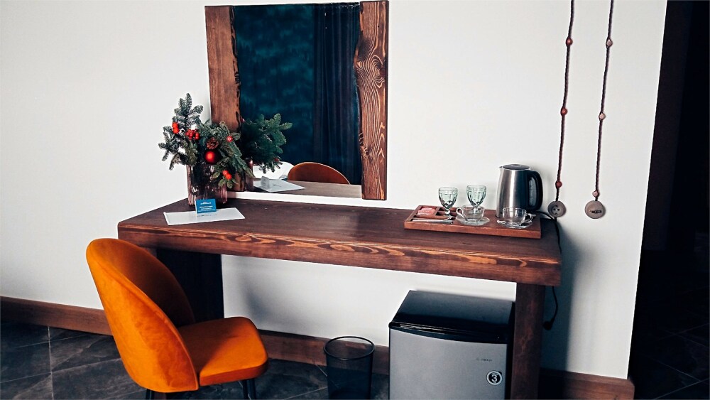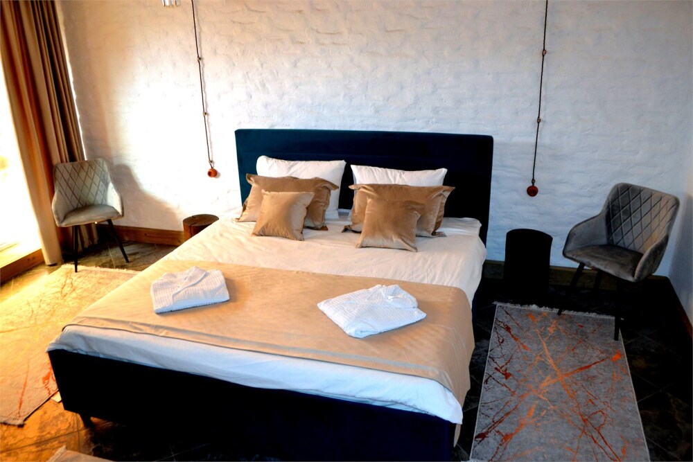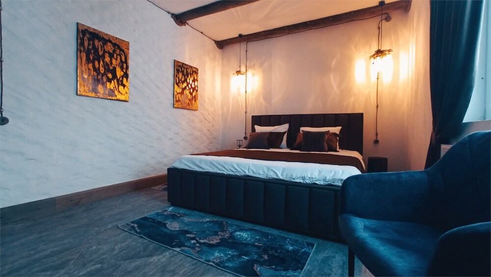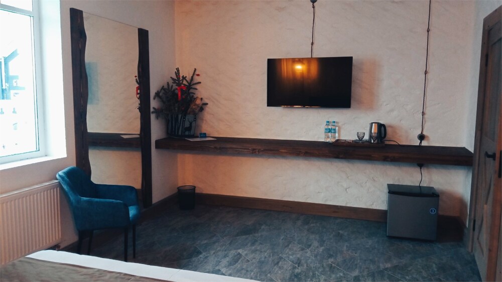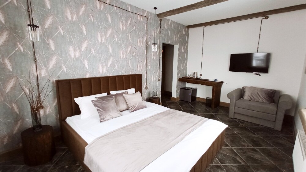 Отдых в уединенной обстановке. В каждом из наших двух комфортабельных номеров уровня «Премиум» гости отеля смогут насладиться крепким и здоровым сном на кроватях King size (180 см) c уникальными матрацами. Также номера оснащены HD телевизором с выбором международных каналов, чайной базой, феном, мини-холодильником, косметическими принадлежностями.