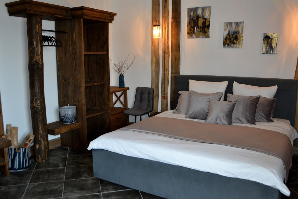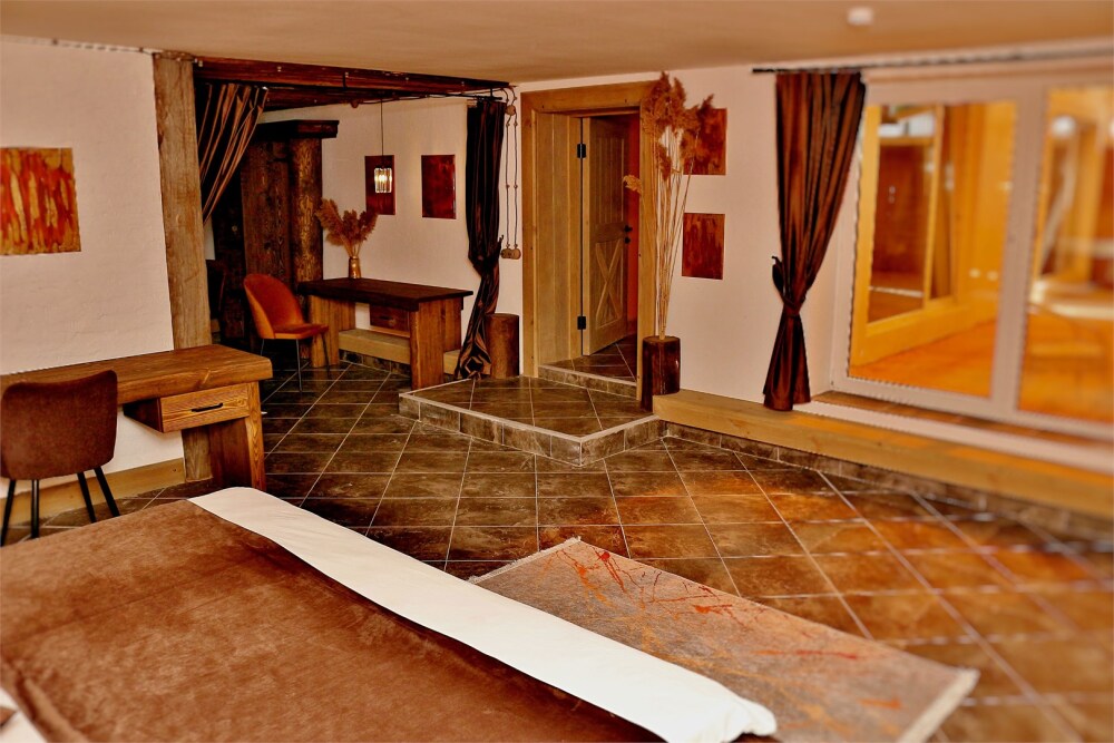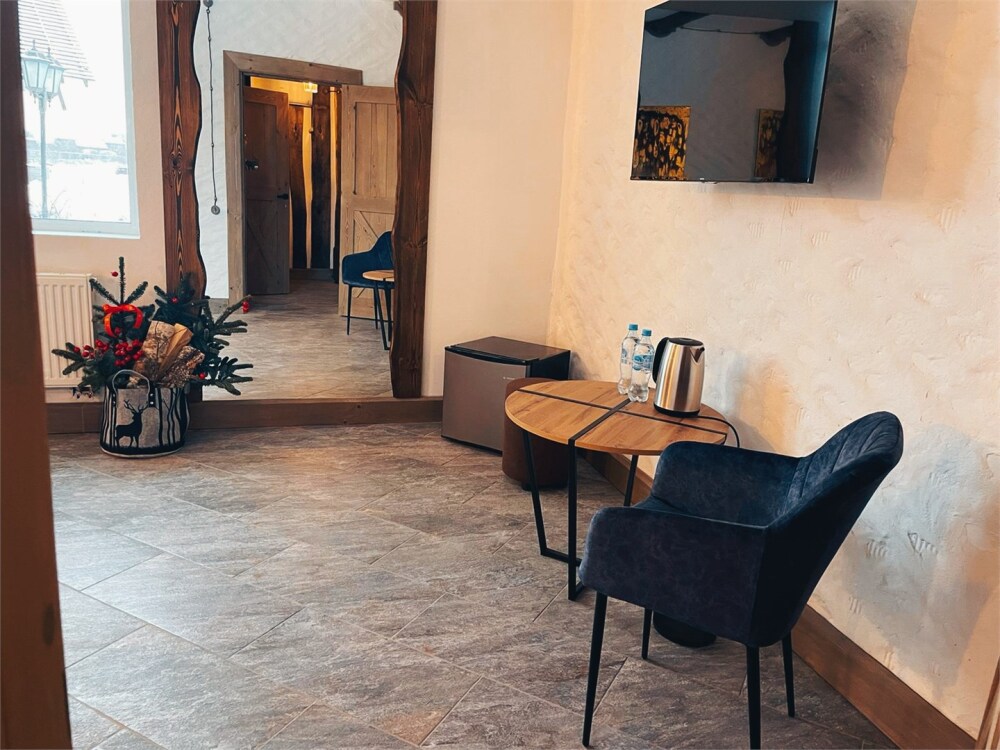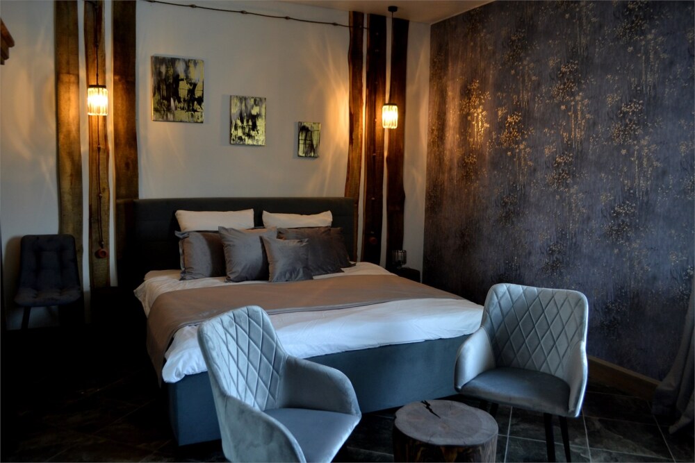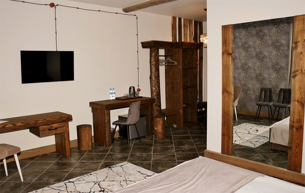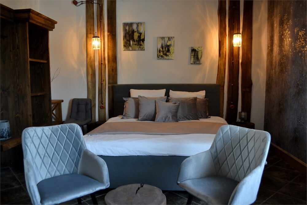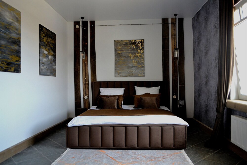 Отдых в уединенной обстановке. В каждом из наших двух комфортабельных номеров уровня «Премиум» гости отеля смогут насладиться крепким и здоровым сном на кроватях King size (180 см) c уникальными матрацами. Также номера оснащены HD телевизором с выбором международных каналов, чайной базой, феном, мини-холодильником, косметическими принадлежностями.
