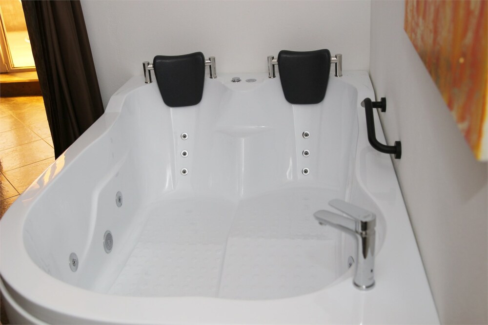 Роскошный многокомнатный номер имеет выход на террасу, где так романтично признаваться друг другу в любви и джакузи для принятия ванн вдвоем. Постояльцы клубного первого этажа и постоянные гости также получают от нас «вкусные» комплименты в номер:оливки, маслины, орешки или ягоды, бутилированная нейтрально заряженная и обогащенная кислородом Суздальская вода. Гостей ждет чайная база с набором для приготовления чая и кофе, фирменные туалетные принадлежности, мини-бар, фен, предметы гостеприимства отеля.