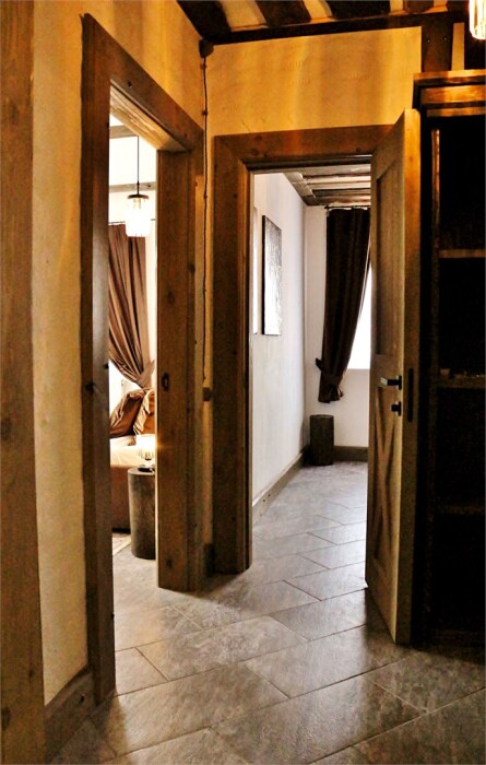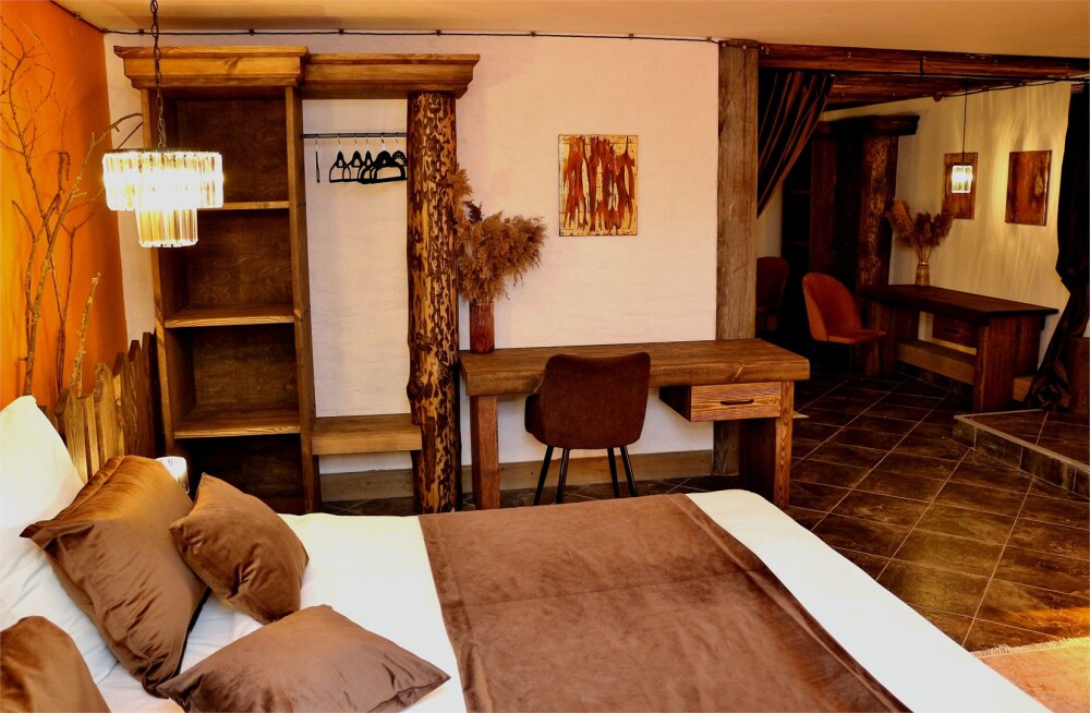 Делюкс - это самые роскошные и тихие номера с кроватями King size в Суздале с просторными ванными комнатами, отделанными амбарной доской и мрамором. Гостей ждет сервировочная база с набором для приготовления кофе и чая, косметические принадлежности.