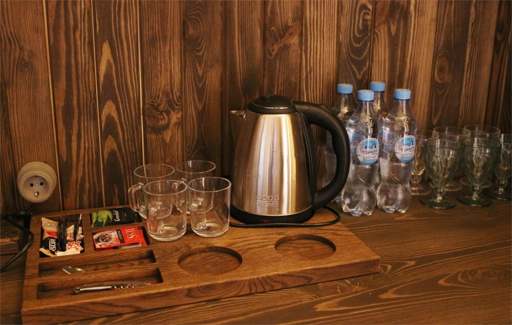 Самые роскошные и тихие номера с кроватями King size в Суздале с просторными душевыми комнатами, отделанными амбарной доской и мрамором. Гостей ждет сервировочная база с набором для приготовления кофе и чая.