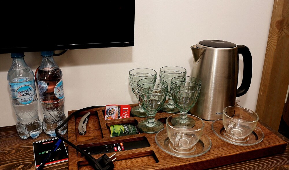 Самые роскошные и тихие номера с кроватями King size в Суздале с просторными ванными комнатами, отделанными амбарной доской и мрамором. Гостей ждет сервировочная база с набором для приготовления кофе и чая, косметические принадлежности.