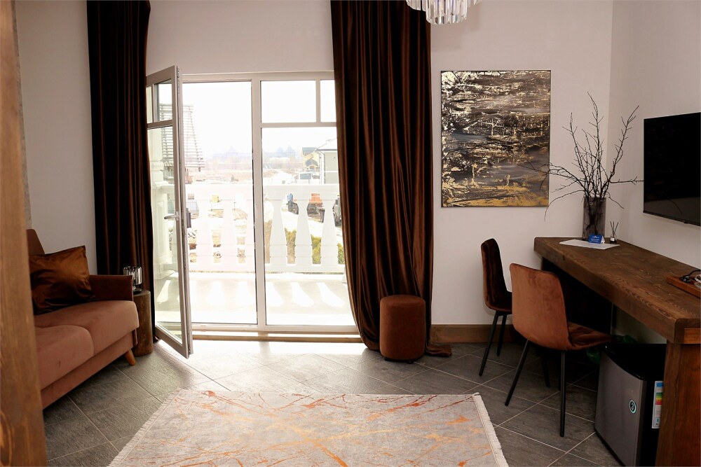 Просторный номер с выходом на террасу на первом клубном этаже. Номер располагает широкоформатным телевизором со спутниковыми каналами. Также в номере: бутилированная нейтрально заряженная и обогащенная кислородом Суздальская вода, чайная база с набором для приготовления чая и кофе, фирменные туалетные принадлежности, мини-бар, фен, предметы гостеприимства отеля. Проживание с животными по запросу.