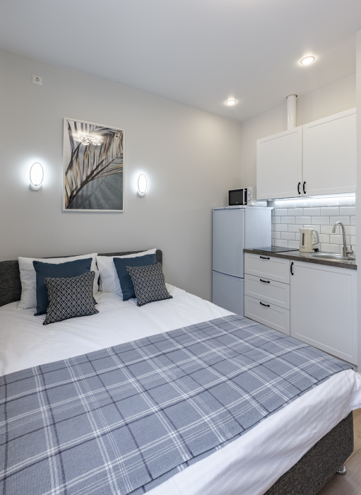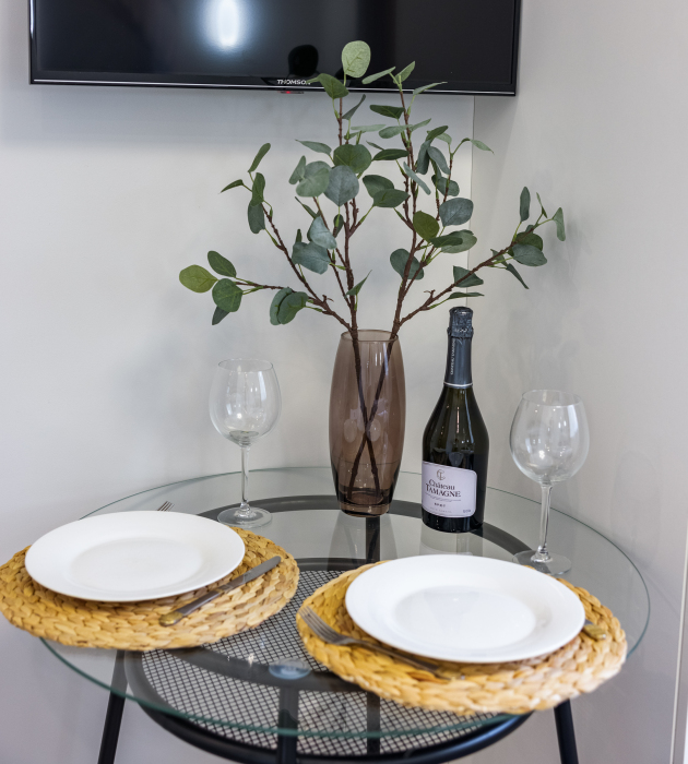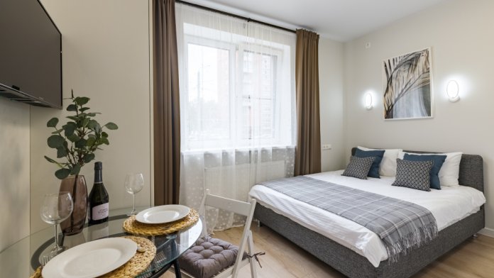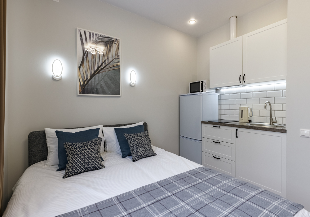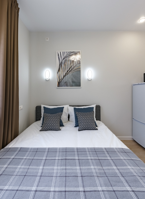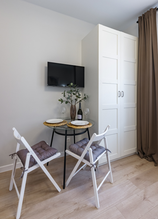 В апартаментах есть всё самое необходимое: телевизор, Wi-Fi, фен, утюг, стиральная машина, чайник, микроволновая печь, плита, холодильник, столовые приборы и базовая посуда, чай и кофе. Мы предоставляем нашим гостям полотенца, гель для душа, свежее постельное белье и тапочки.