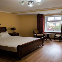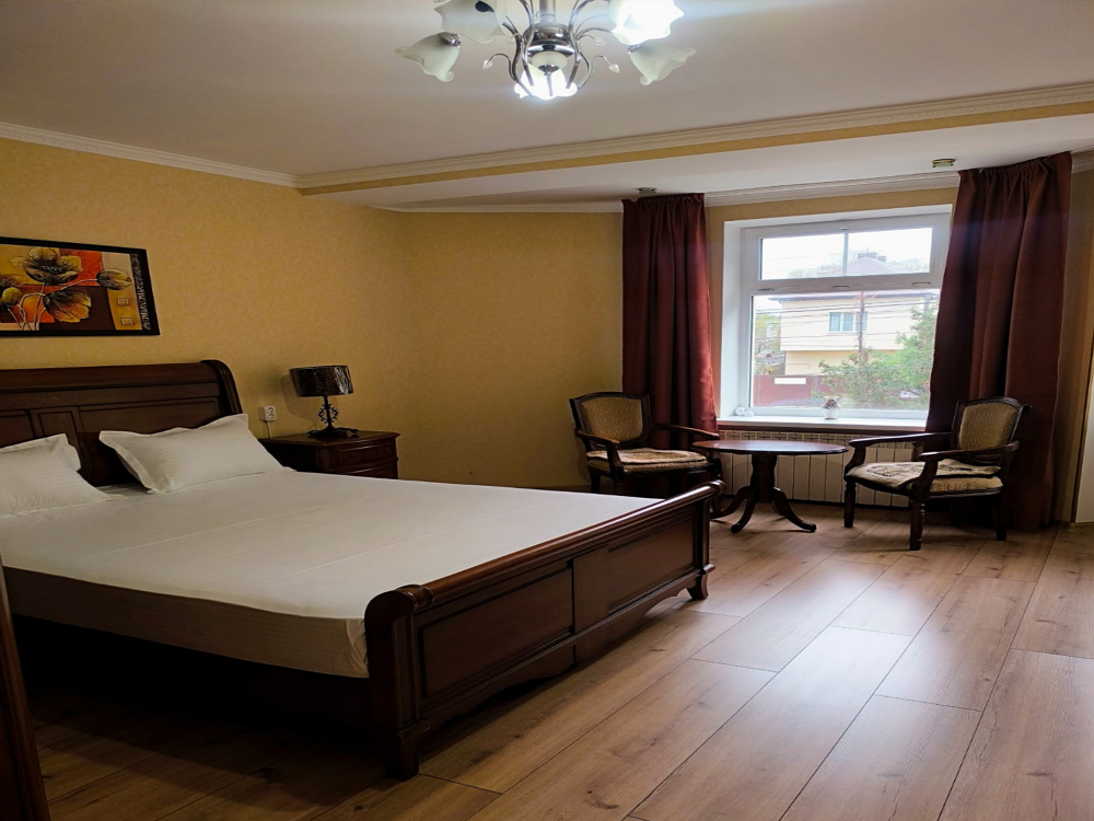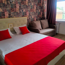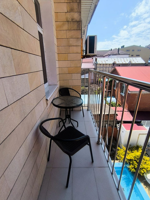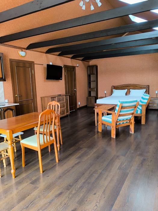 Комфортабельный номер оборудован всем необходимым для приятного отдыха: удобная кровать обеспечит спокойный сон, а стол и стулья - комфортное место для работы или отдыха. В вашем распоряжении также телевизор, холодильник, чайник, набор посуды и бесплатный Wi-Fi. Насладитесь свежим воздухом на собственном балконе.