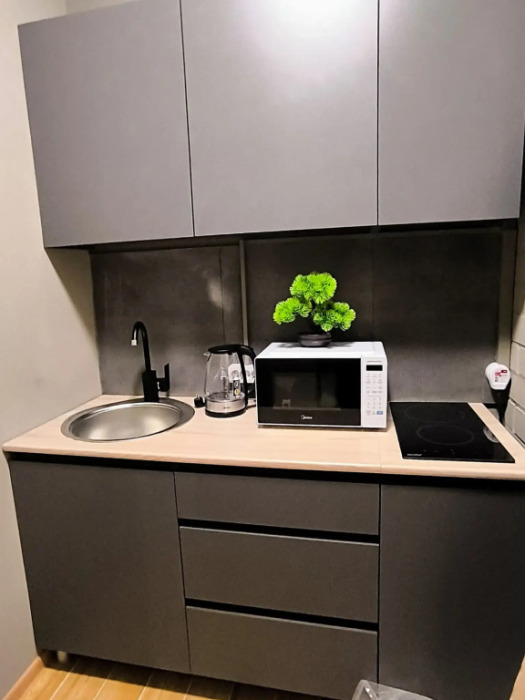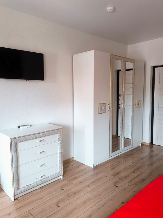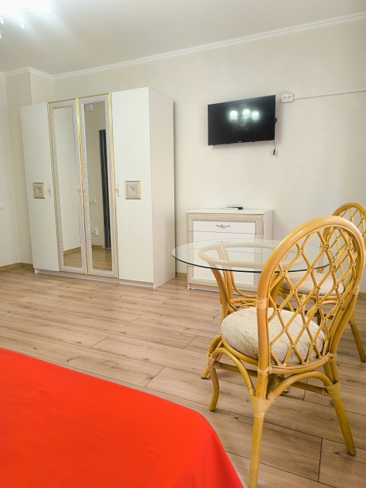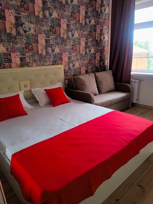 Улучшенные апартаменты. Уютный номер со всем необходимым: удобная кровать, стол и стулья, телевизор, холодильник, чайник, набор посуды и бесплатный Wi-Fi.