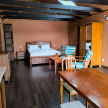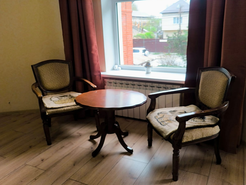 Уютный номер со всем необходимым: удобная кровать, стол и стулья, телевизор, холодильник, чайник, набор посуды и бесплатный Wi-Fi.