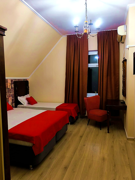 Для размещения гостей доступны номера различных категории и вместимости, что позволяет подобрать идеальный вариант, как для индивидуального путешественника, так и для семьи. Все они оснащены качественной мебелью, современной техникой и собственной ванной комнатой для комфортного проживания. Из удобств установлены: телевизор, кондиционер, шкаф для одежды, стол и стулья. В распоряжении гостей бесплатный доступ к Wi-Fi.