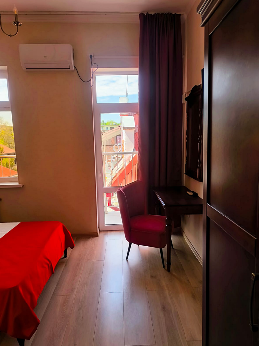 Уютный номер со всем необходимым: удобная кровать, стол и стулья, телевизор, холодильник, чайник, набор посуды и бесплатный Wi-Fi, балкон.
