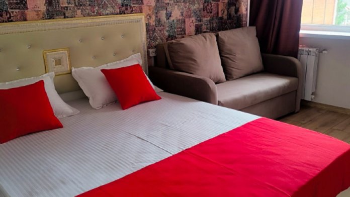 Двухкомнатные апартаменты с балконом. Уютный номер со всем необходимым: удобная кровать, стол и стулья, телевизор, холодильник, чайник, набор посуды и бесплатный Wi-Fi, балкон.