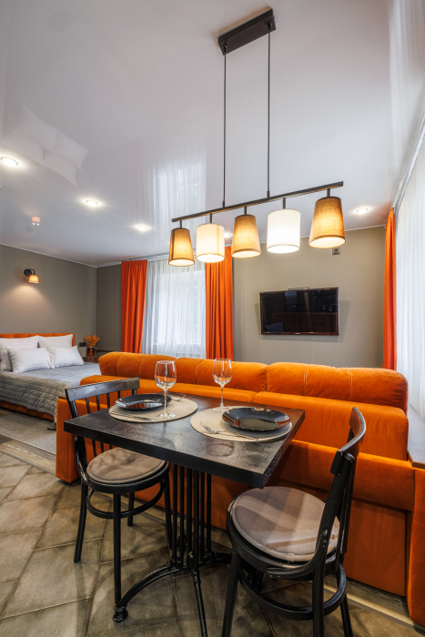 В апартаментах есть всё самое необходимое: телевизор, Wi-Fi, фен, утюг, стиральная машина, чайник, микроволновая печь, плита, холодильник, столовые приборы и базовая посуда, чай и кофе. Мы предоставляем нашим гостям полотенца, гель для душа, свежее постельное белье и тапочки.