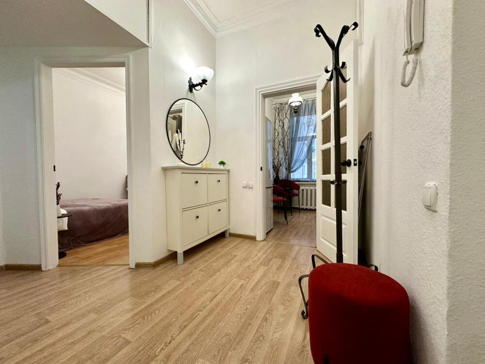 Мы находимся в кирпичном «Сталинском» доме с высокими потолками, построенном по индивидуальному проекту.
