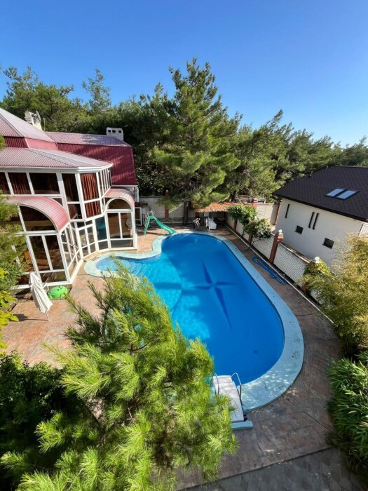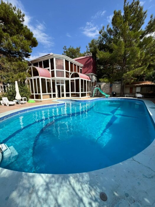 Дом «Азарт», располагается в непосредственной близости от большого открытого бассейна.