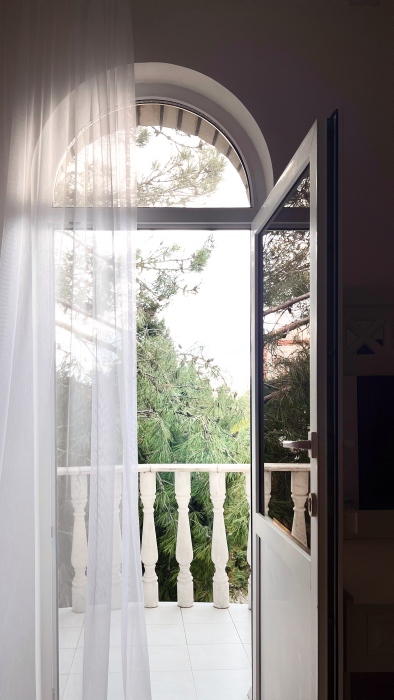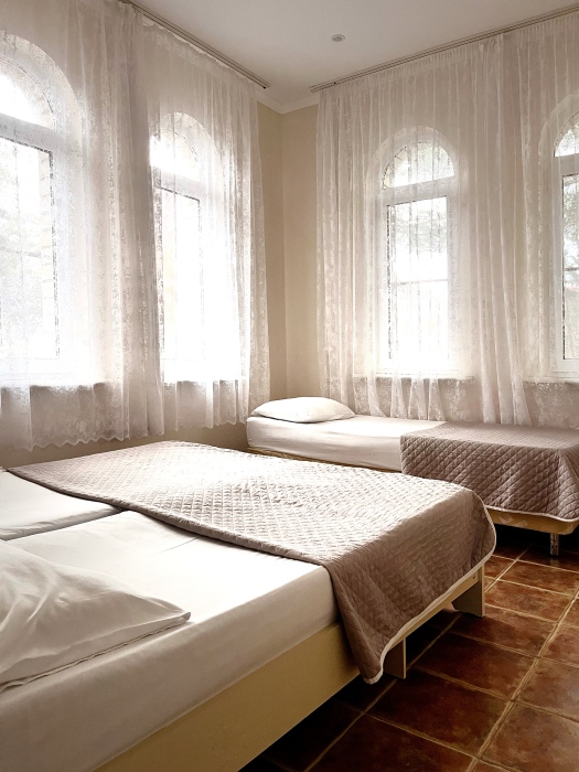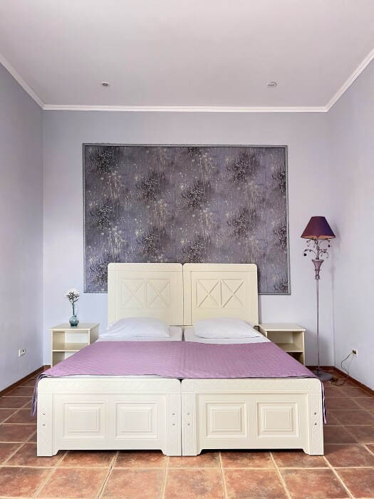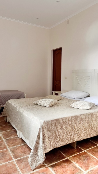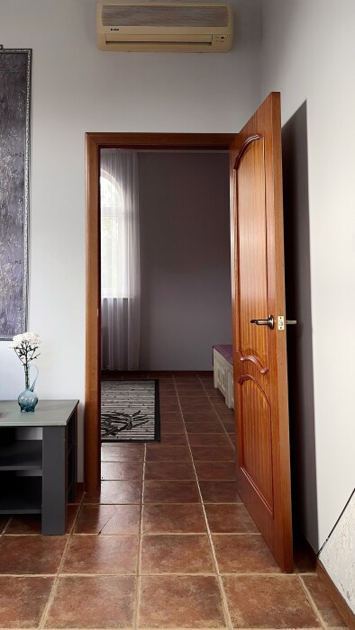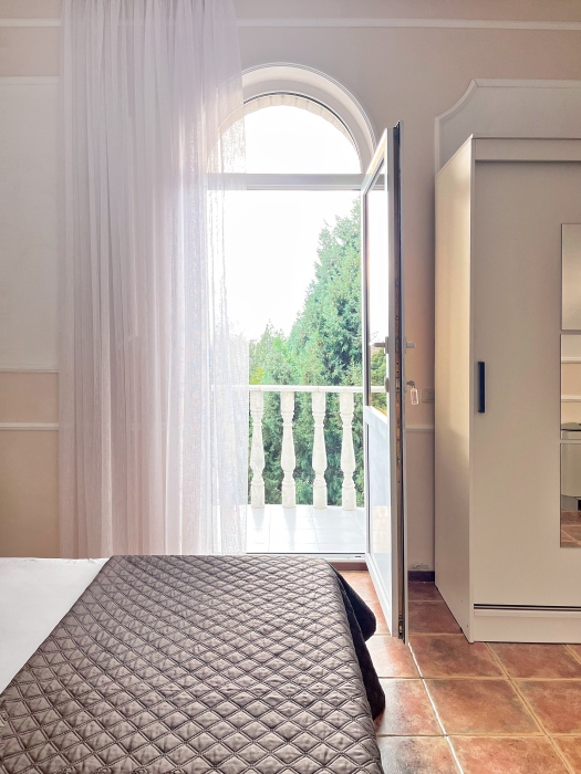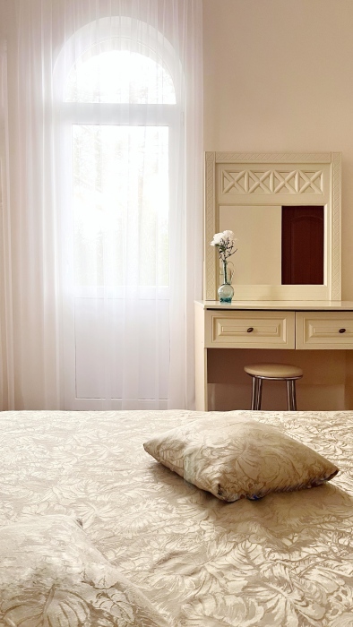 - Три уютные спальни, оснащённые кондиционерами и удобной мебелью. Две из них имеют собственные балконы с видом на морское побережье и горы.