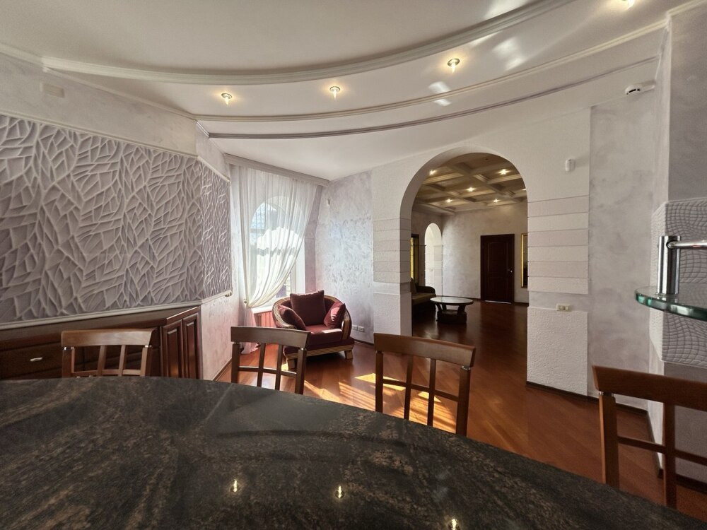 - Просторная кухня-гостиная с барной стойкой. Оснащена всем необходимым оборудованием: