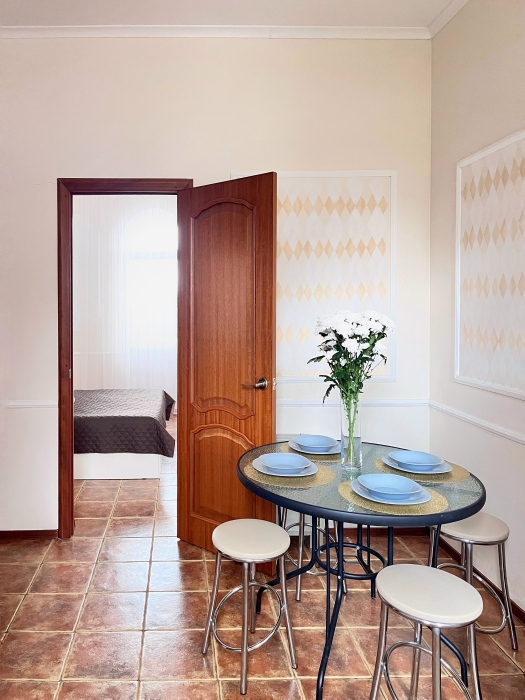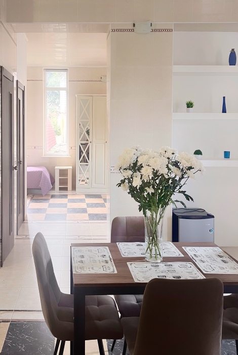 - Светлая и уютная кухня-столовая, оборудованная всем необходимым.