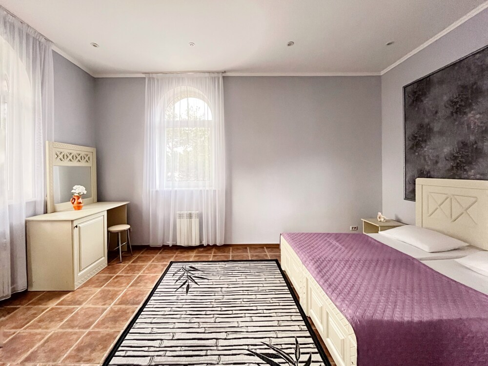 На большой, закрытой, зеленой территории комплекса две виллы и четыре дома, теннисный корт, большой открытый бассейн, банный комплекс, тренажерный зал, бильярд, зона для барбекю с местом отдыха, закрытая парковка. Коттеджи и территория идеально подходят для проведения свадьбы, юбилея, любого торжества. Территория 5000 м.