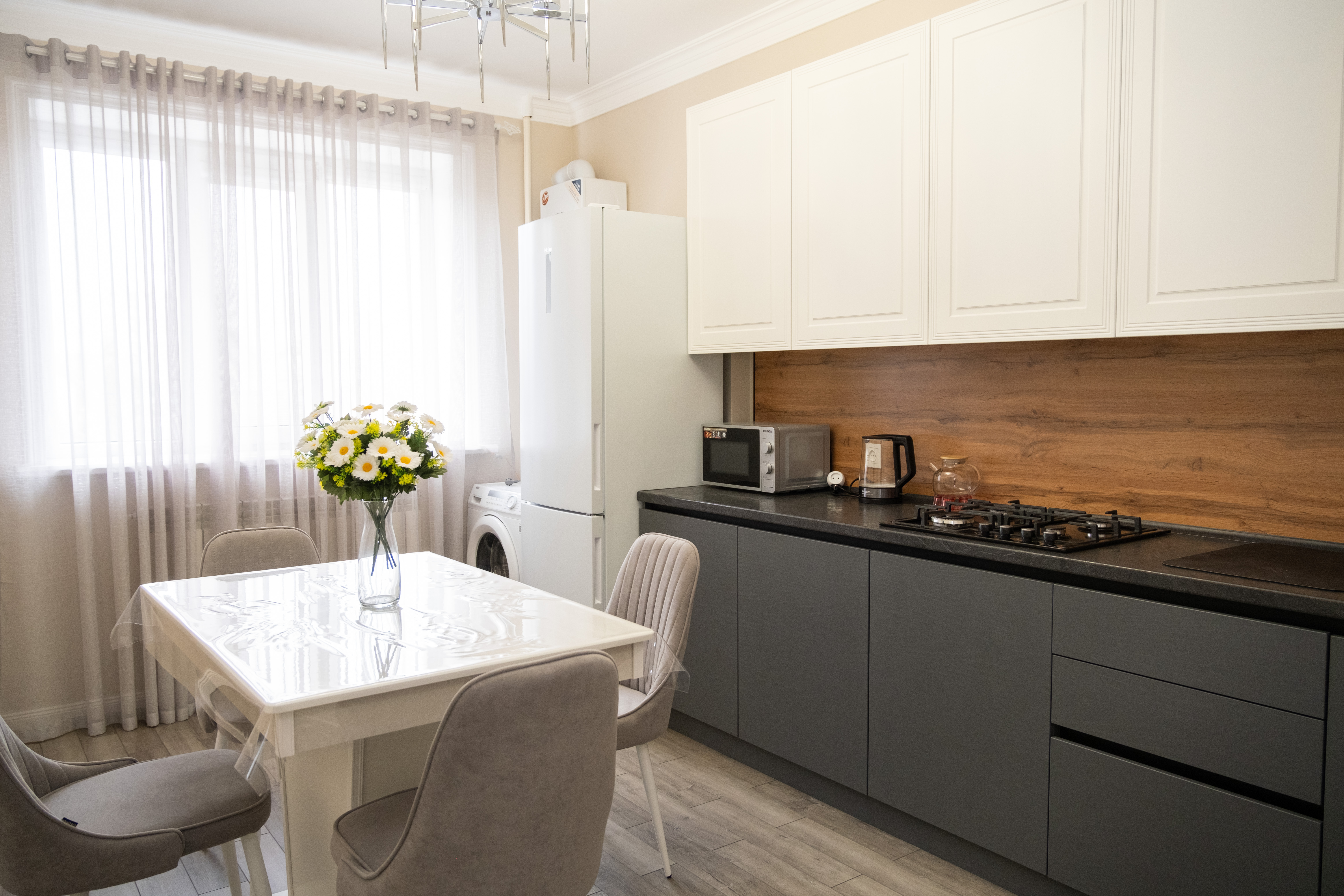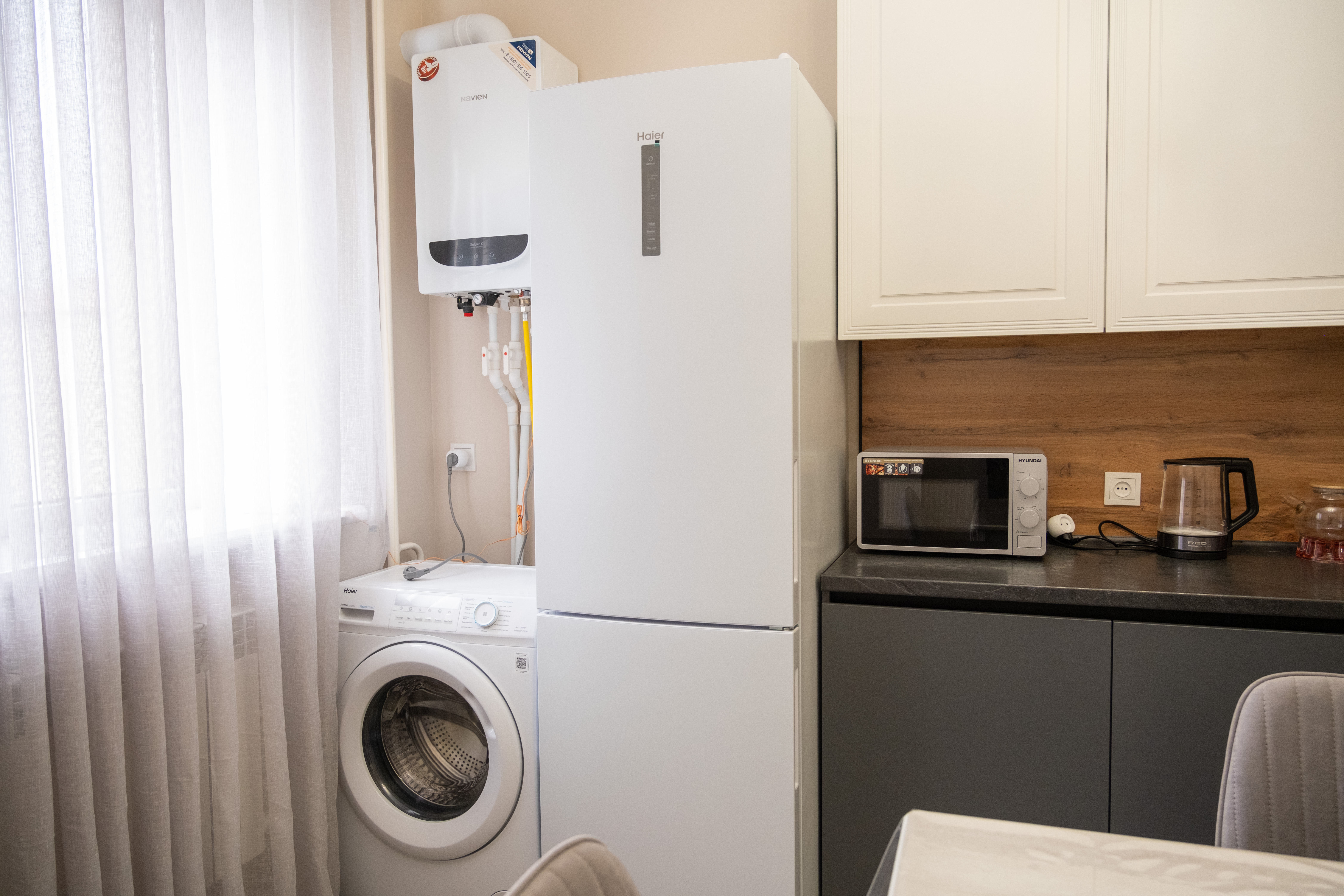 Автоматическая стиральная машина и утюг позволяют сохранить чистоту и аккуратный внешний вид. Всегда свежие полотенца и постельное белье. Ванная комната с чистой и исправной сантехникой, всегда горячая и холодная вода.