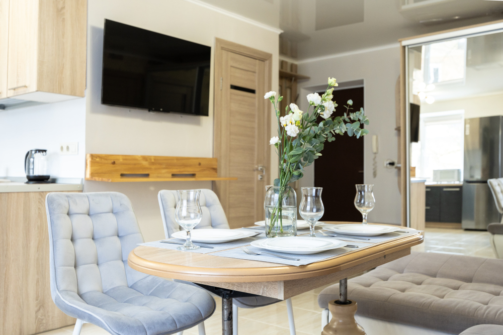 По классике наших апартаментов есть всё, что может понадобится в повседневной жизни. Начиная от скоростного wi-fi, бытовой техники и заканчивая средствами гигиены.
