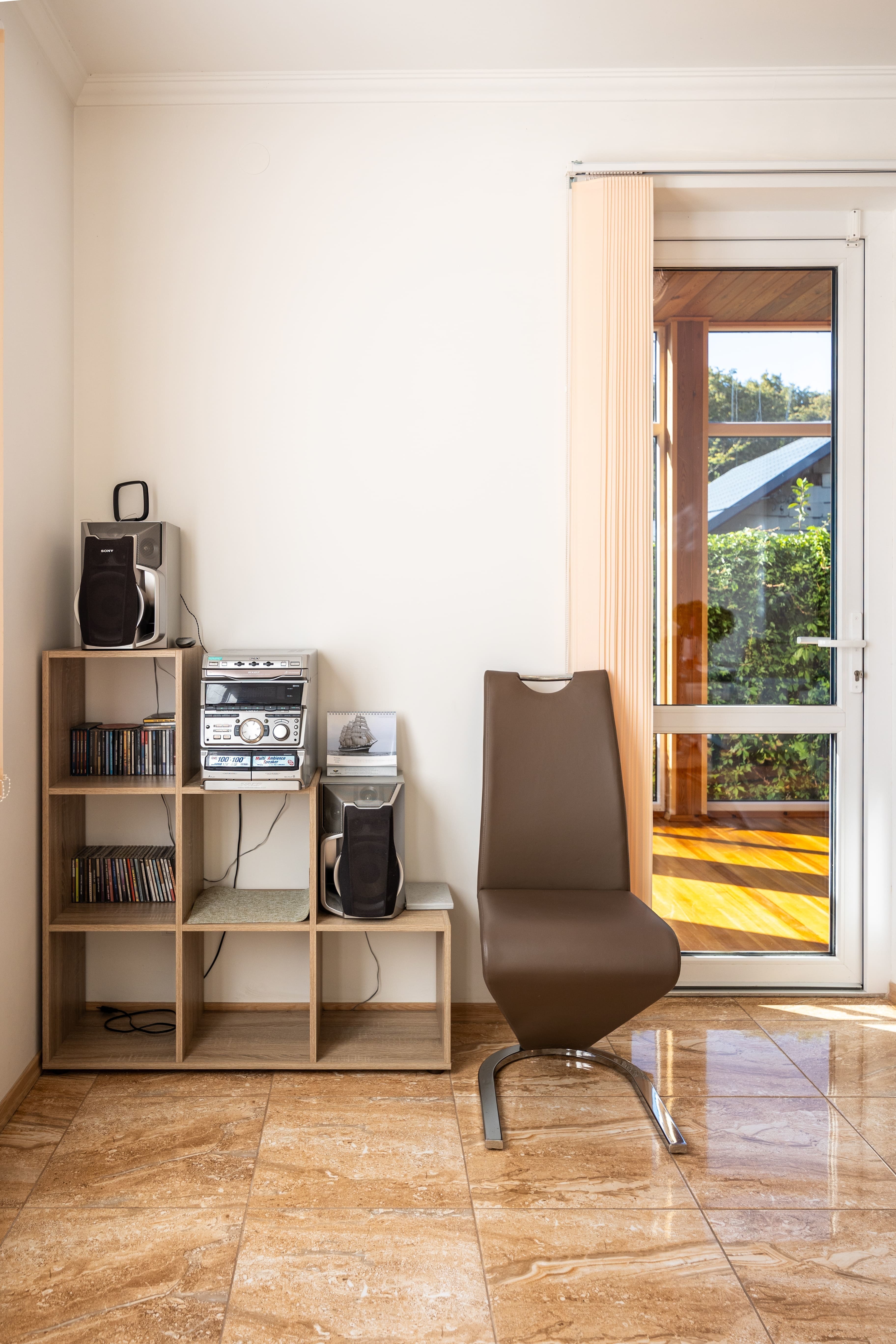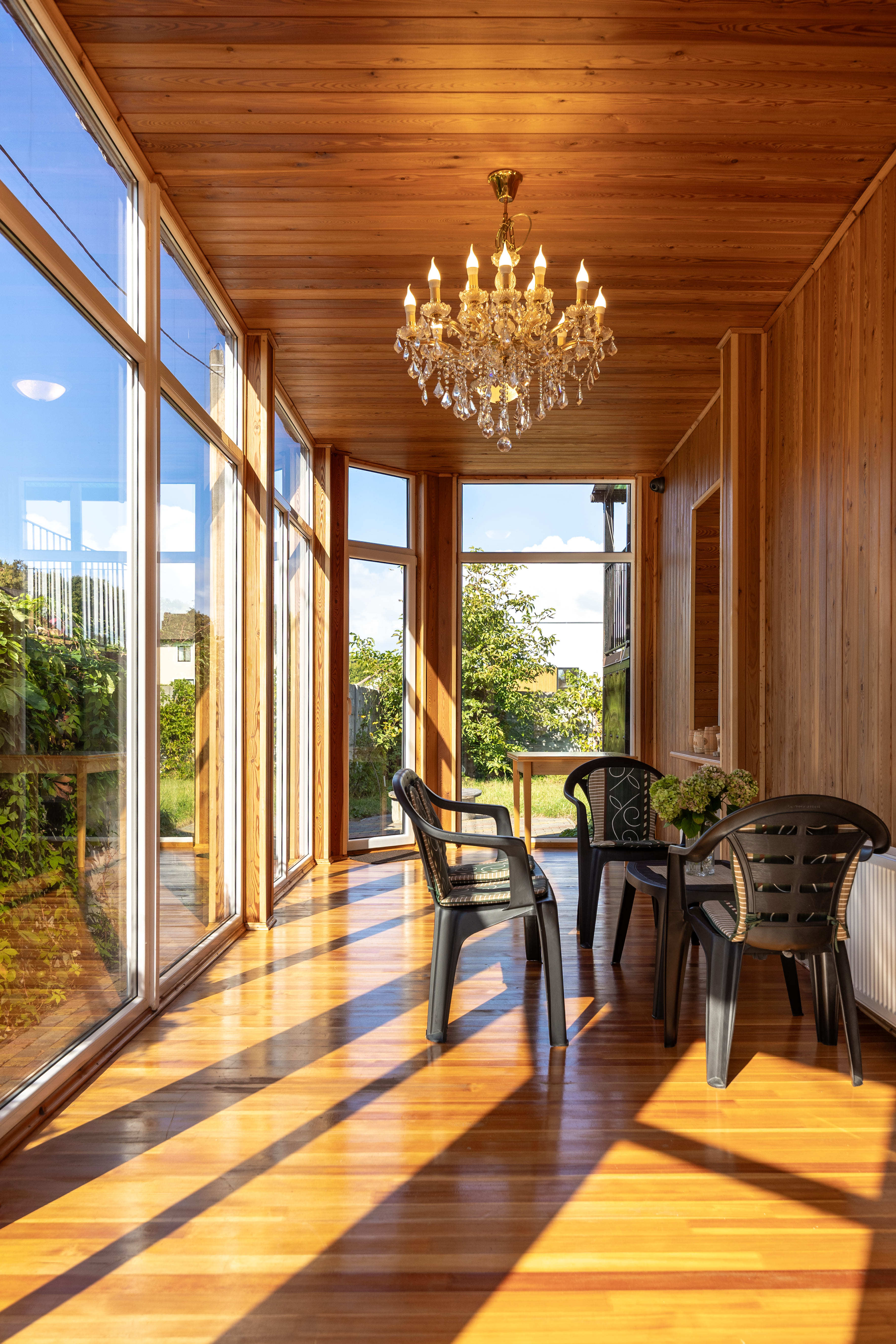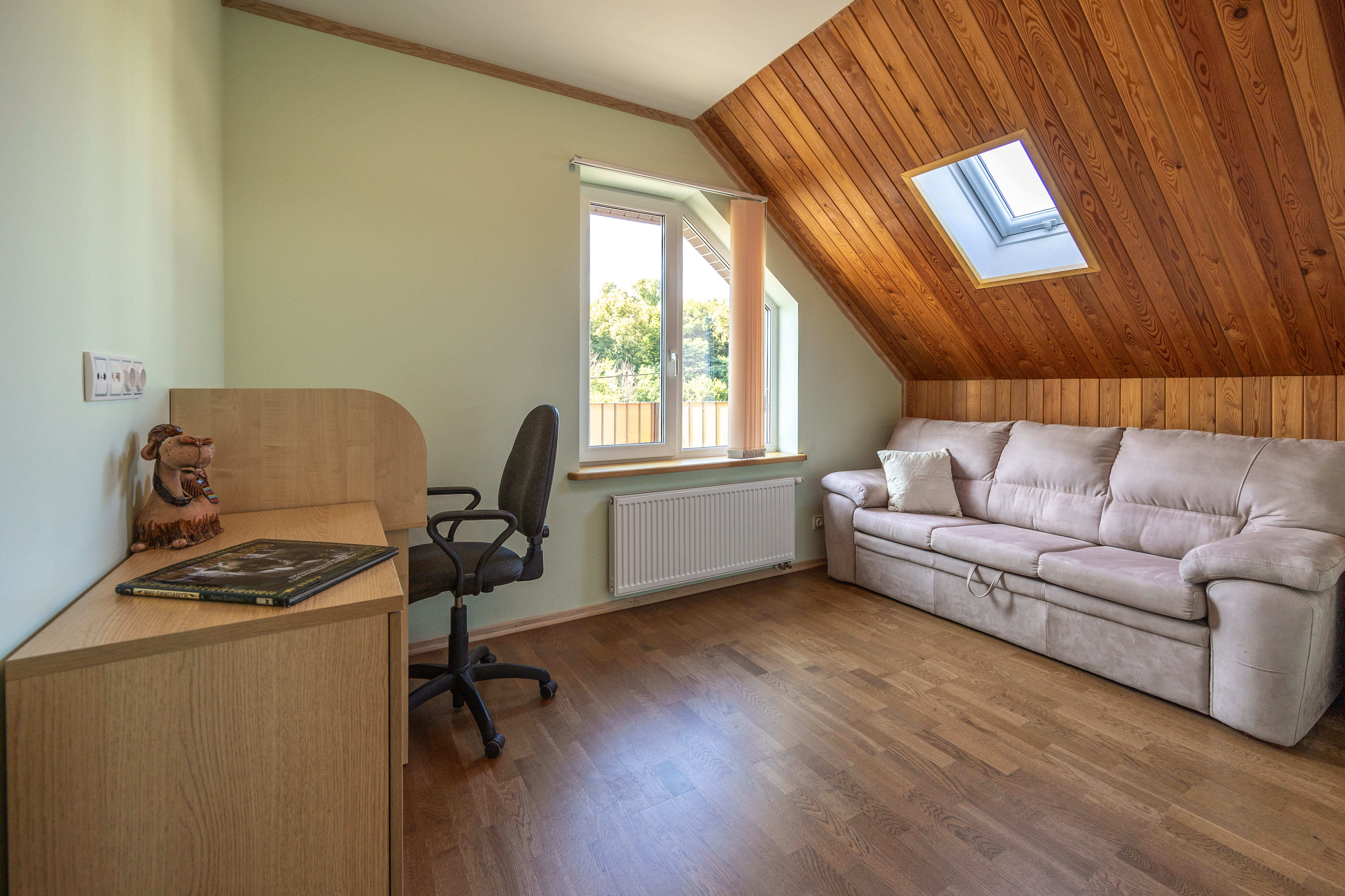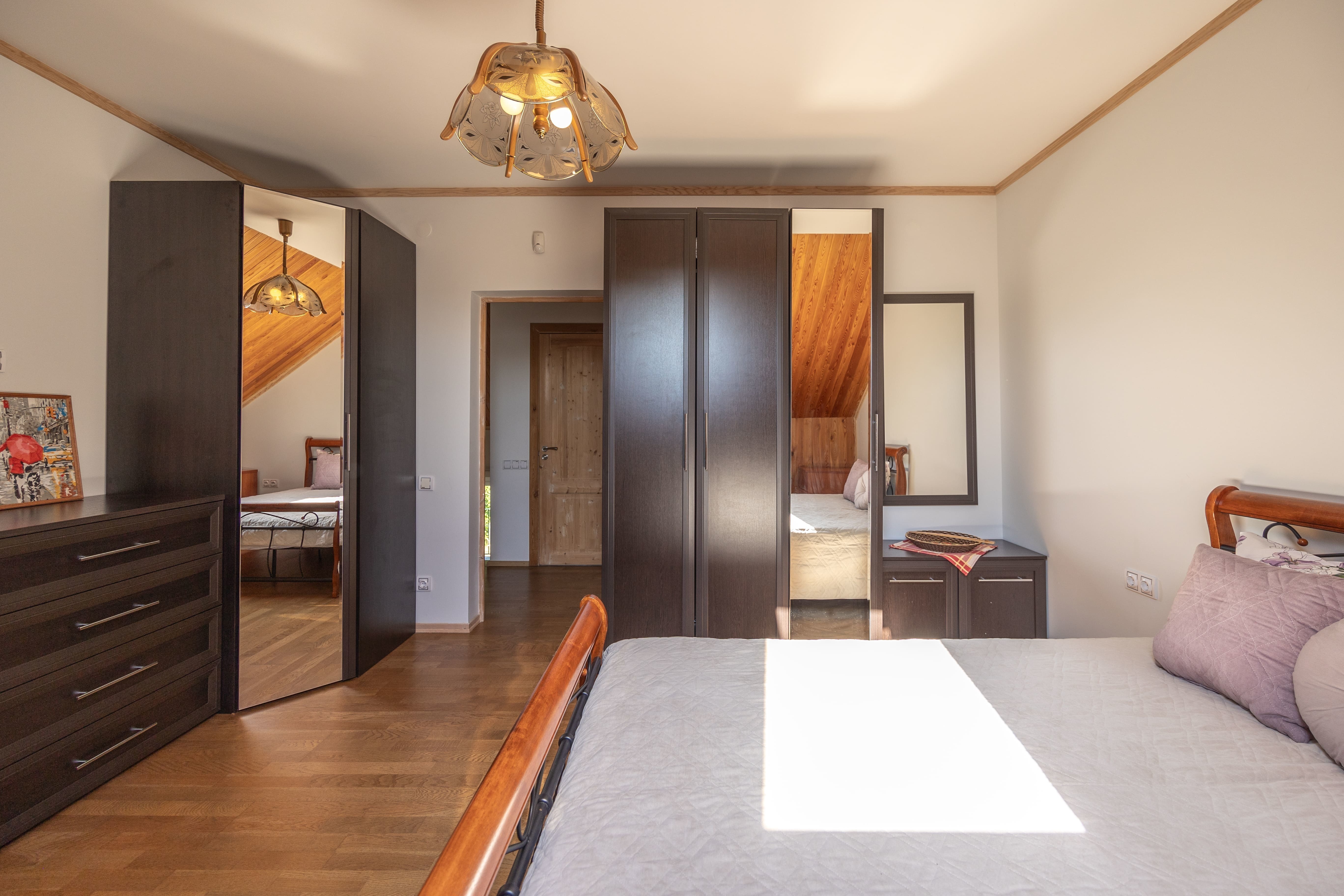 На 1 этаже дома расположена большая кухня-гостиная, где Вы найдете все необходимое для приготовления любимых блюд и уютные места для отдыха и обедов. Кроме того, 1 этаж украшает закрытая терраса - идеальное место для уединения или чтения в тихой обстановке, защищенной от ветра и погодных условий. На 2 этаже Вас ожидают 2 уютные спальни, обеспечивающие идеальные условия для отдыха и сна. Также здесь расположен большой зал с камином, где можно проводить время в кругу семьи или друзей, наслаждаясь теплом и уютом. Особенное внимание заслуживает открытая терраса на 2 этаже, с которой открывается великолепный вид на окружающую природу. Это прекрасное место для завтраков или ужинов на свежем воздухе, вечерних напитков под звездным небом или просто для расслабления и созерцания закатов или рассветов.