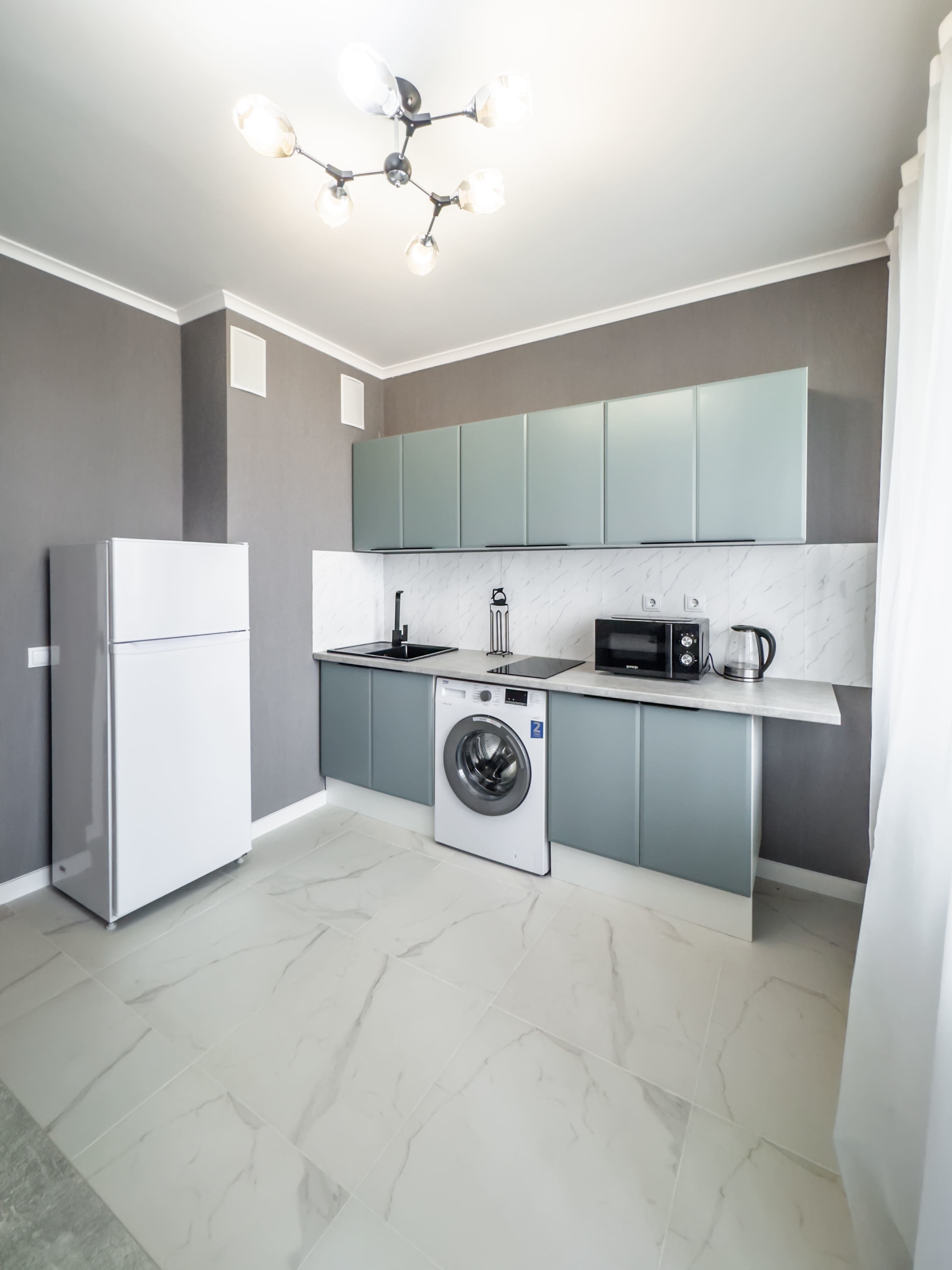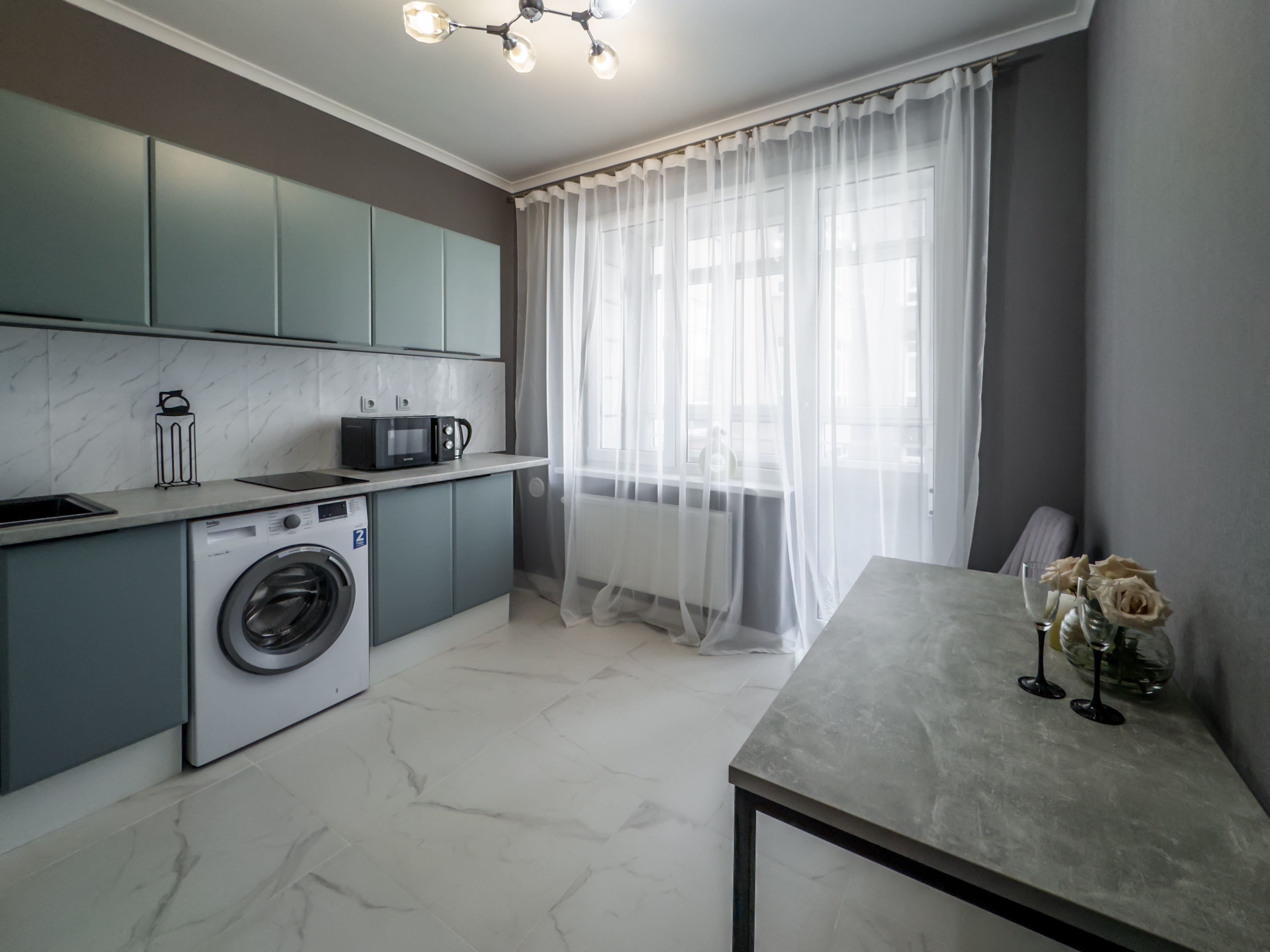 - Кухня со всем необходимым (холодильник, плита, вытяжка, микроволновая печь, чайник, а так же посуда и приборы)