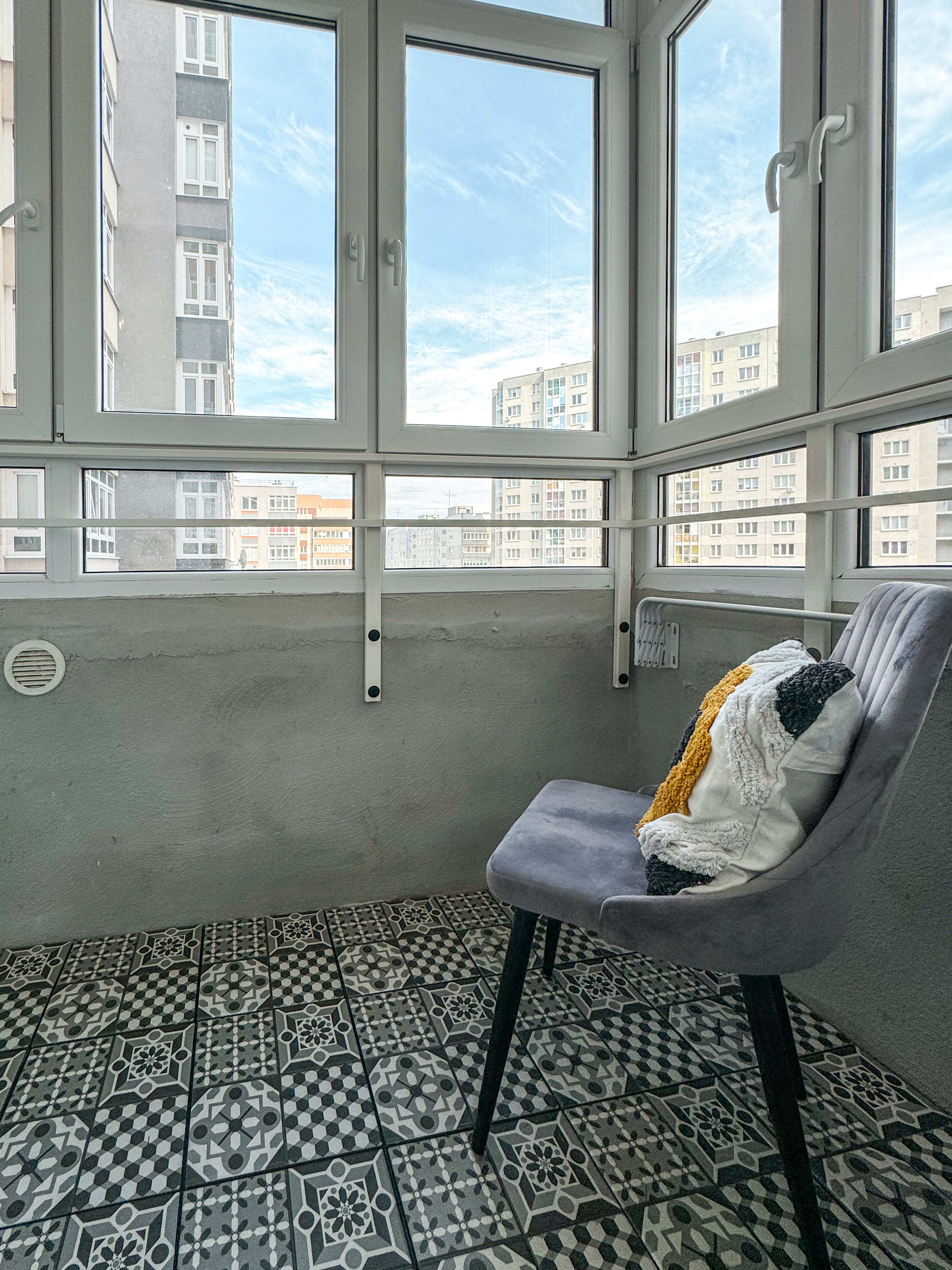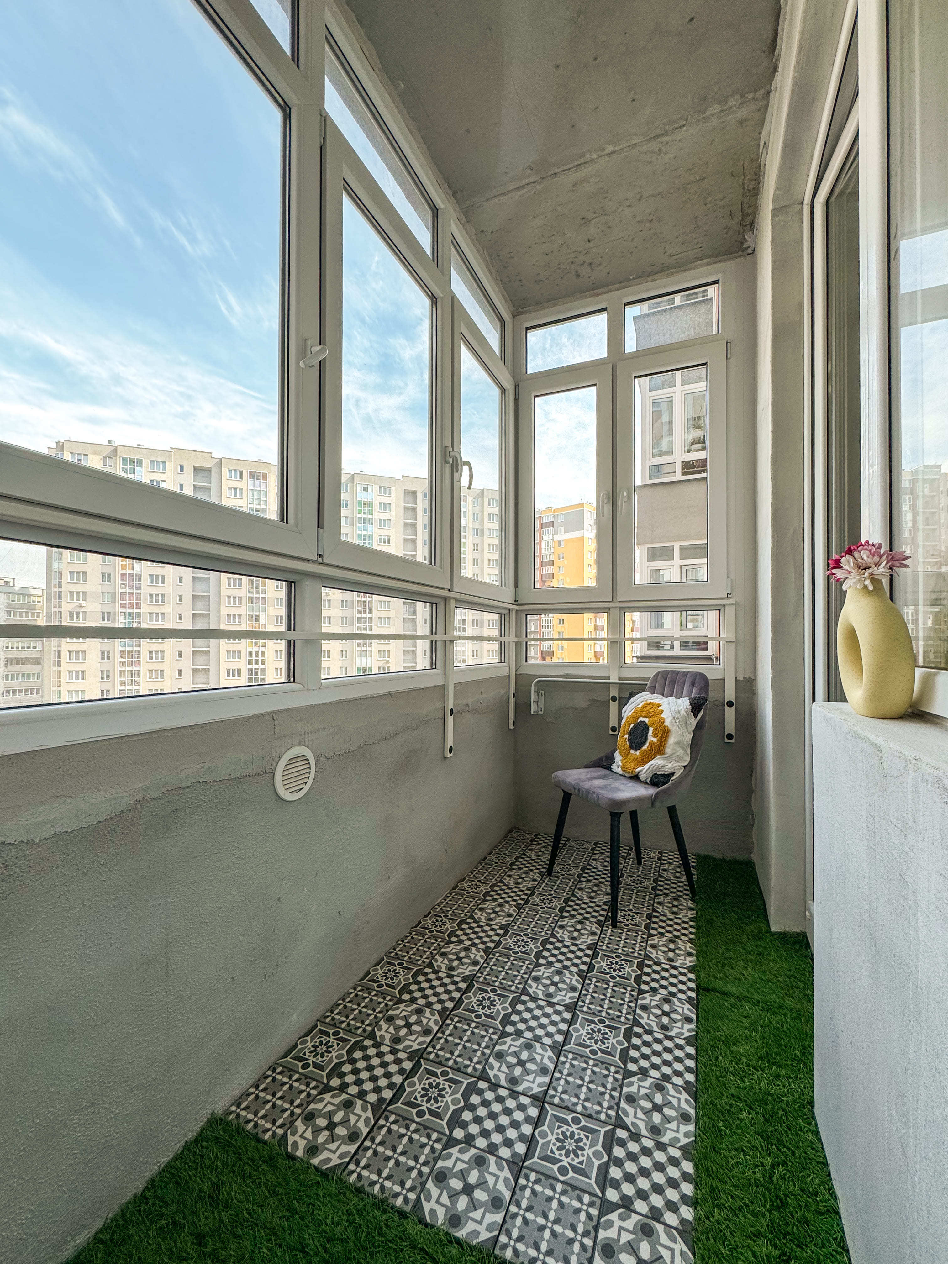 - Просторный остекленный балкон с видом на внутренний двор