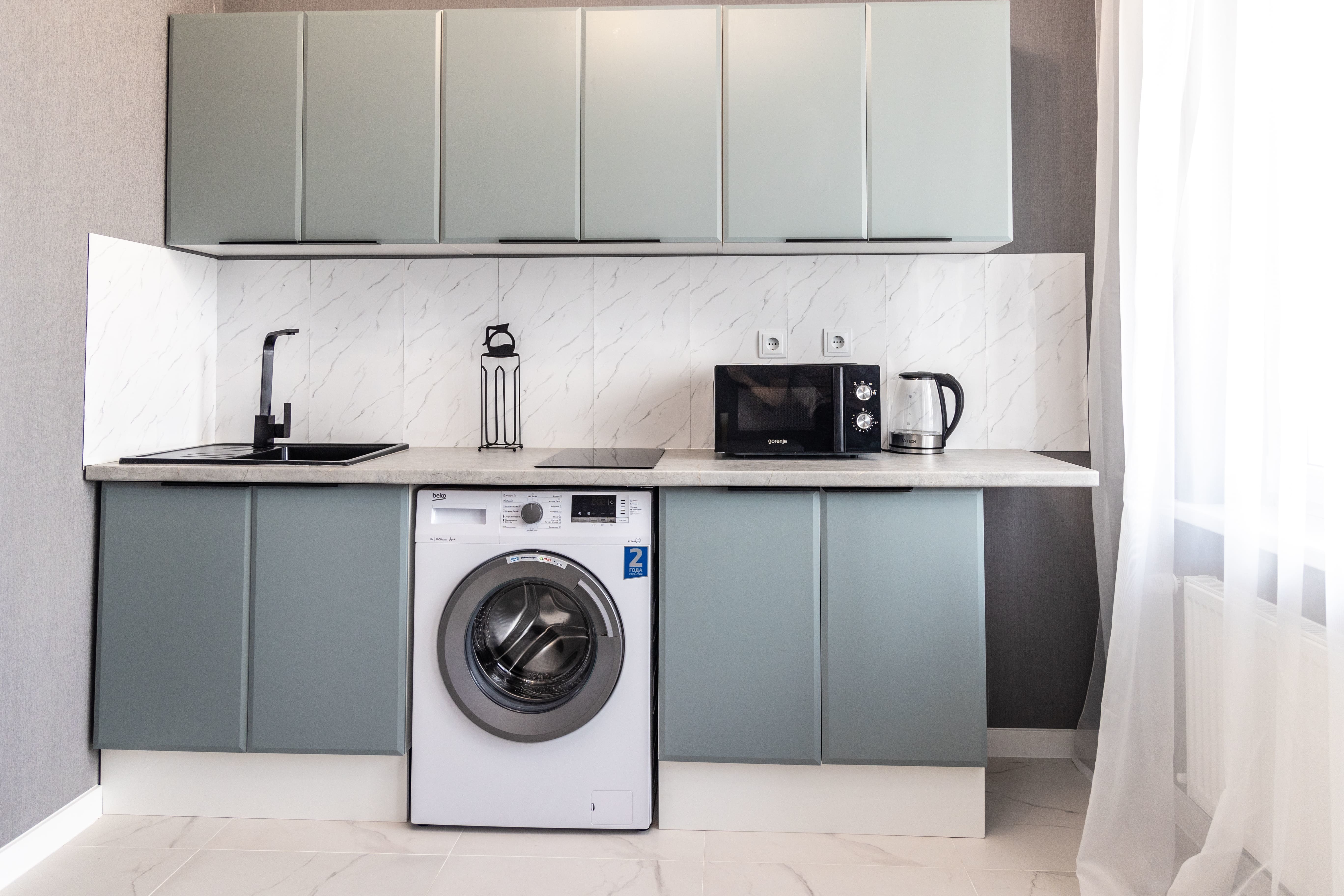 - Стиральная машина, фен, утюг, гладильная доска, сушилка для одежды