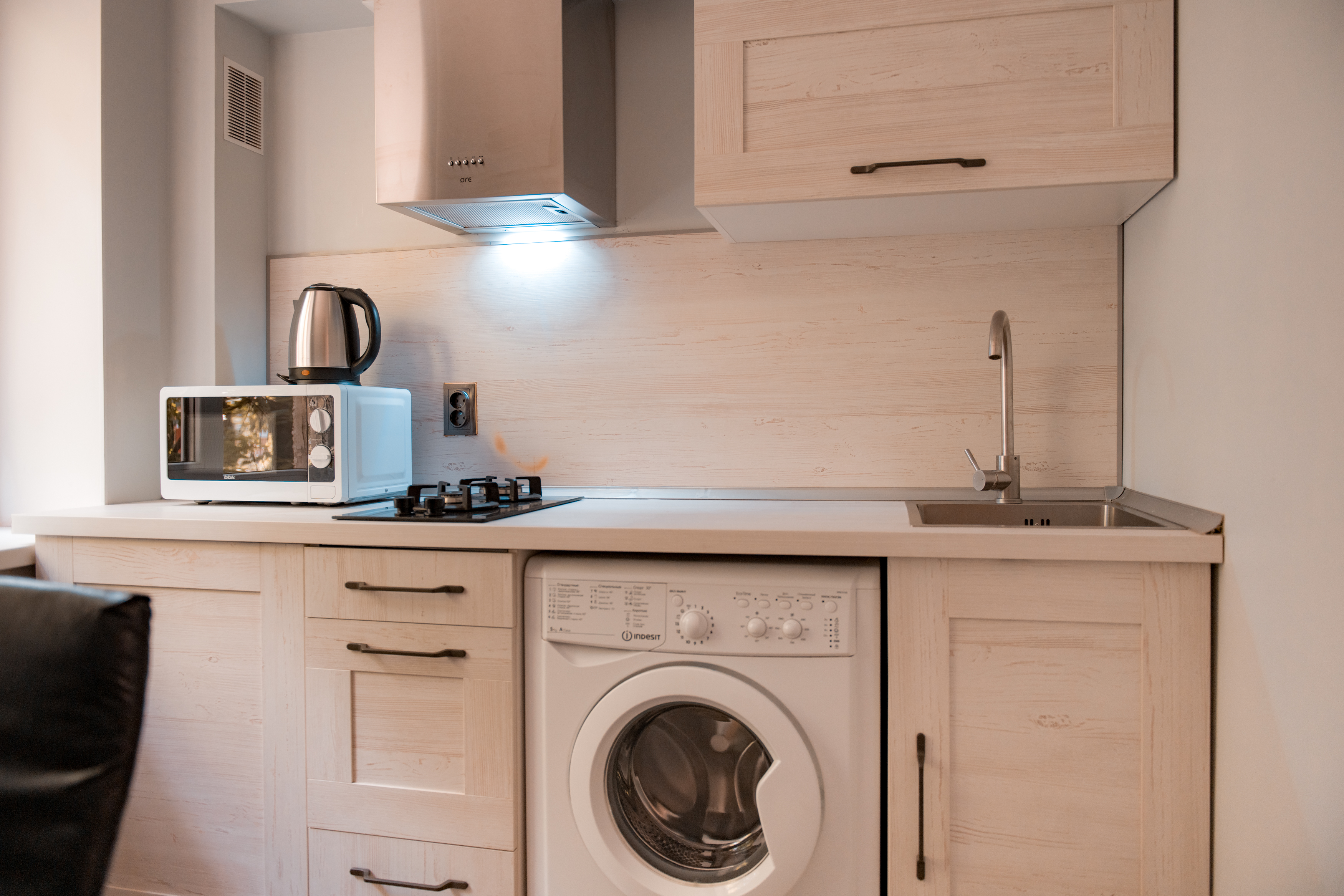 - Стиральная машина, фен, утюг, гладильная доска, сушилка для одежды