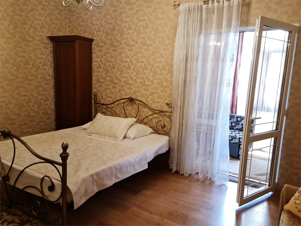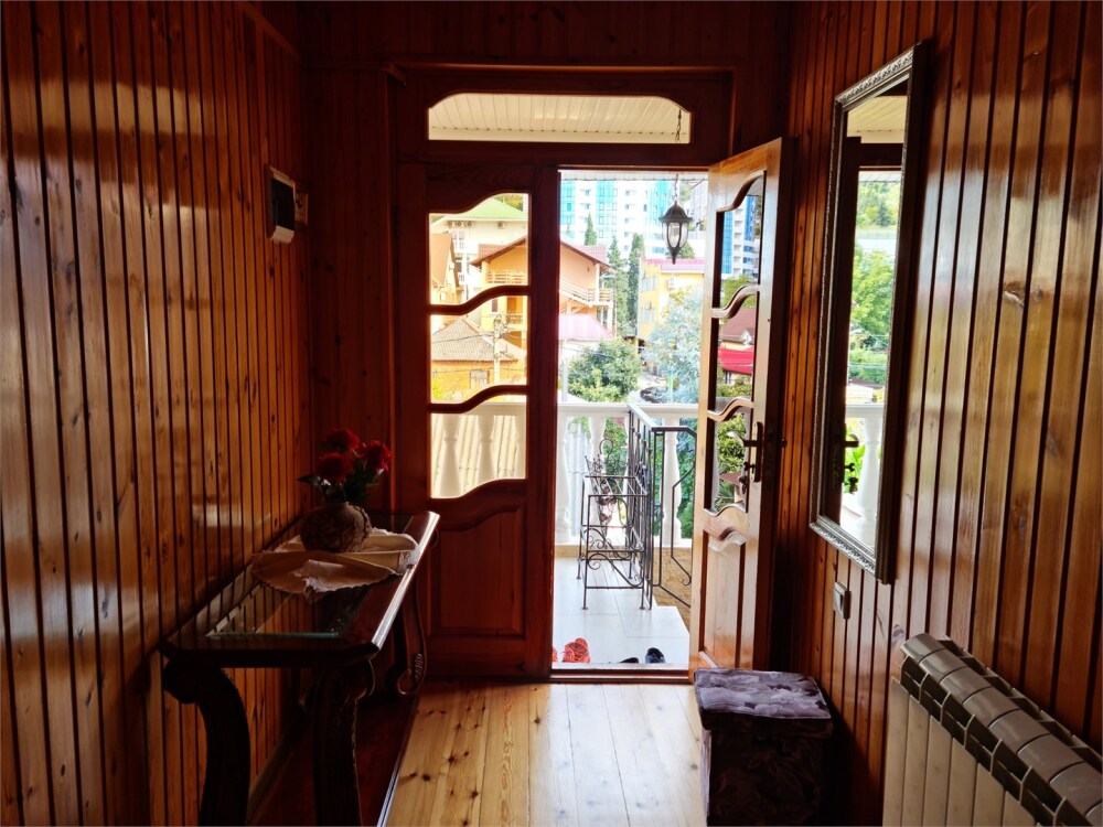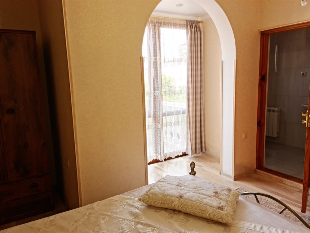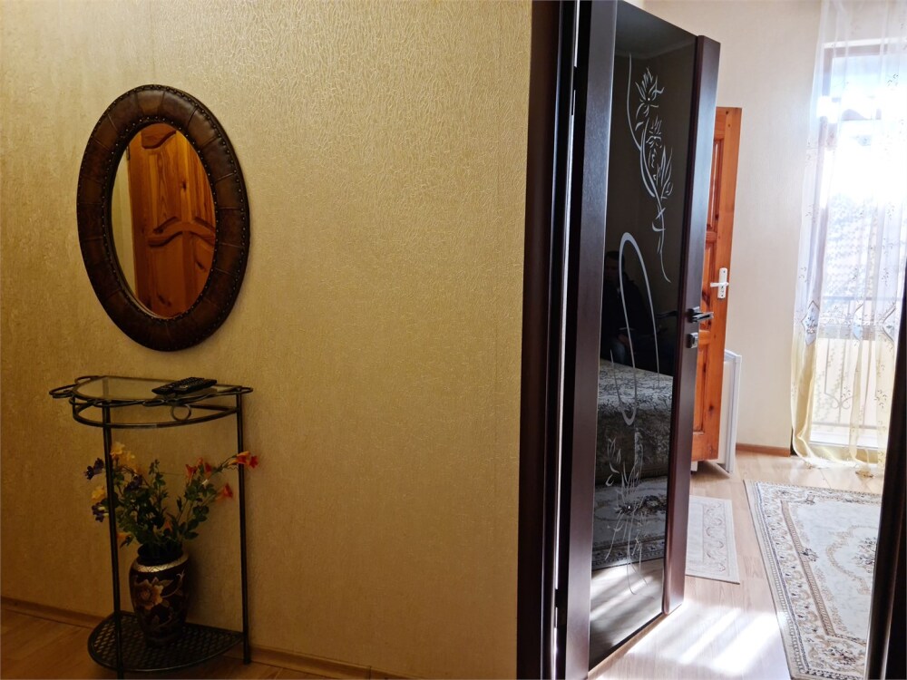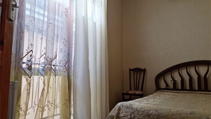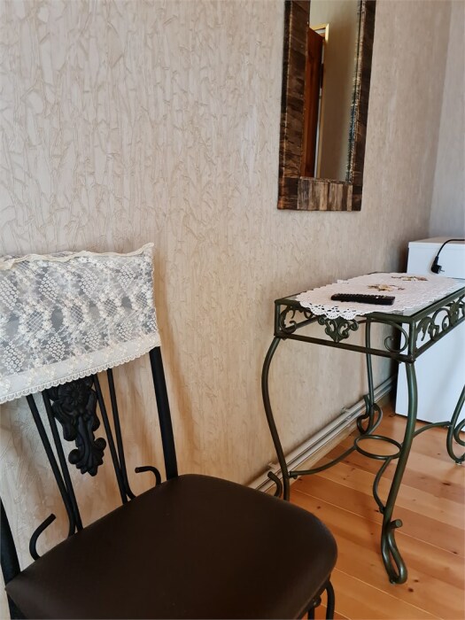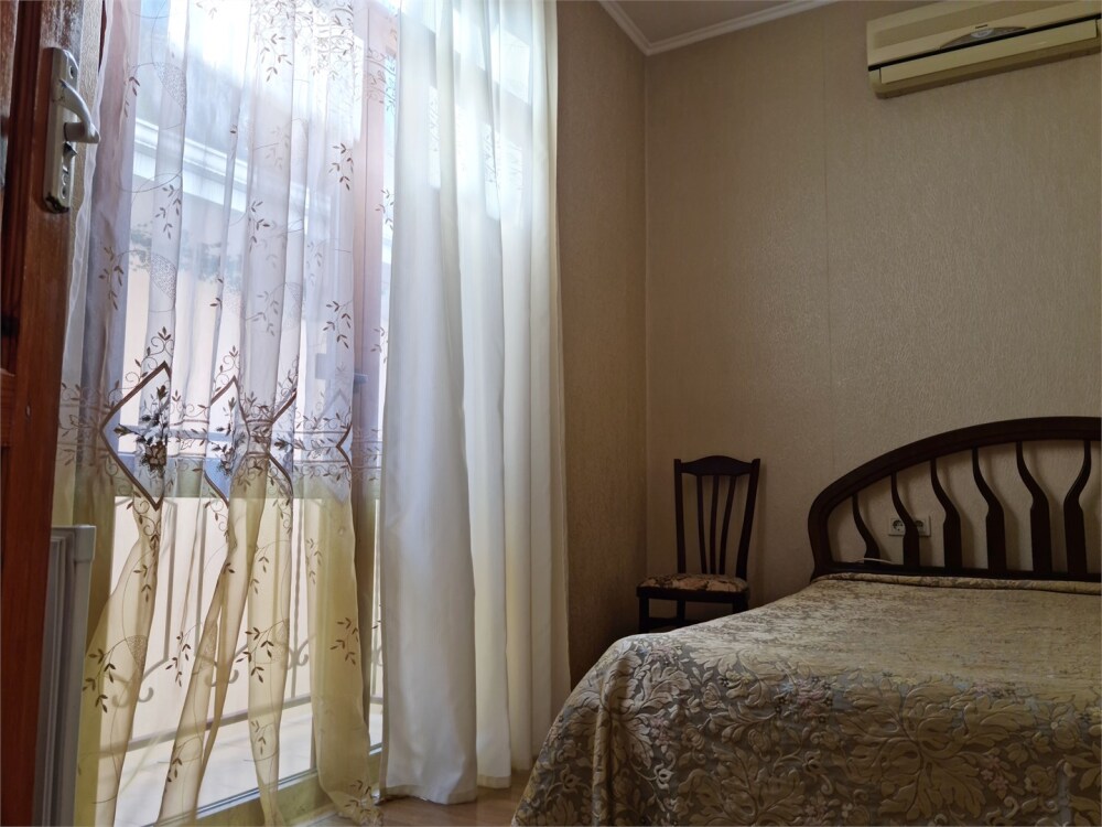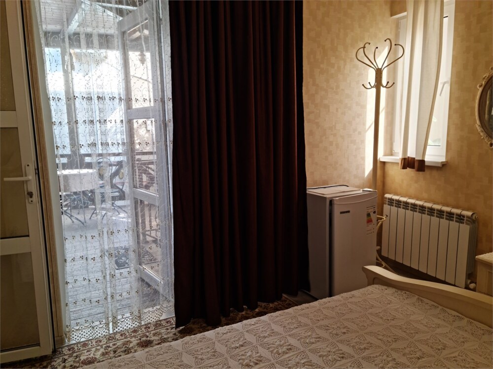 Номер расположен на первом этаже . В номере большая двуспальная кровать , косметический столик , Окна номера выходят во внутренний двор , вход в номер отдельный. Туалетная комната удобна и гармонична душевая туалетные принадлежности.