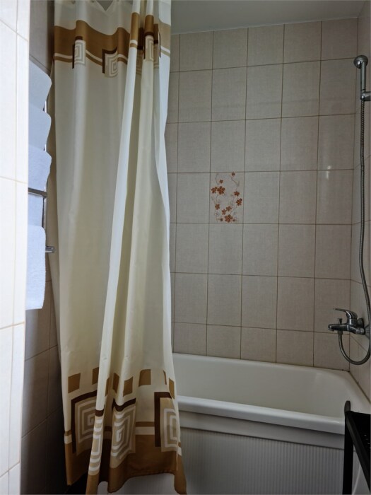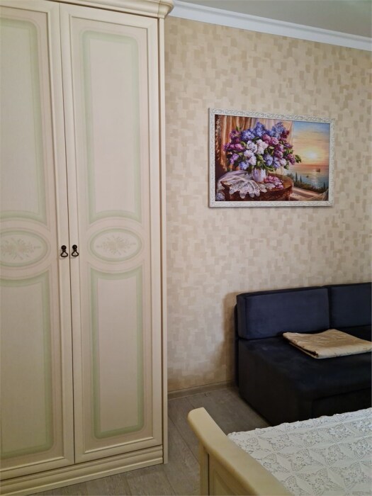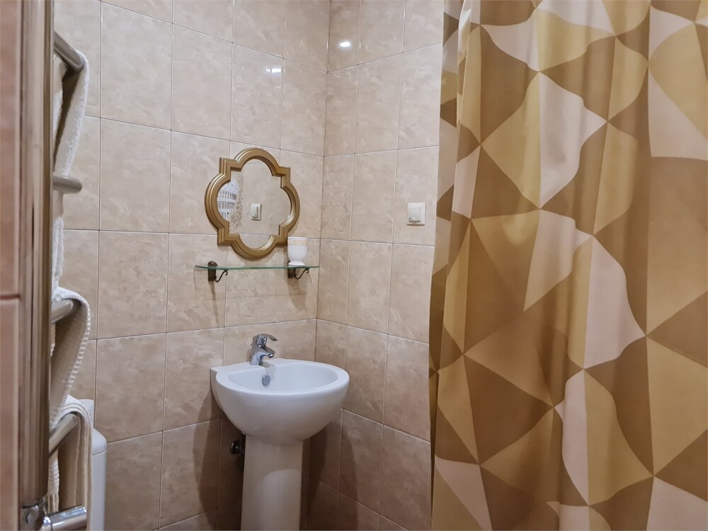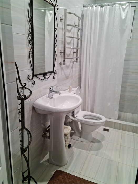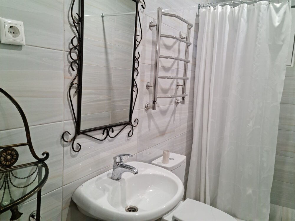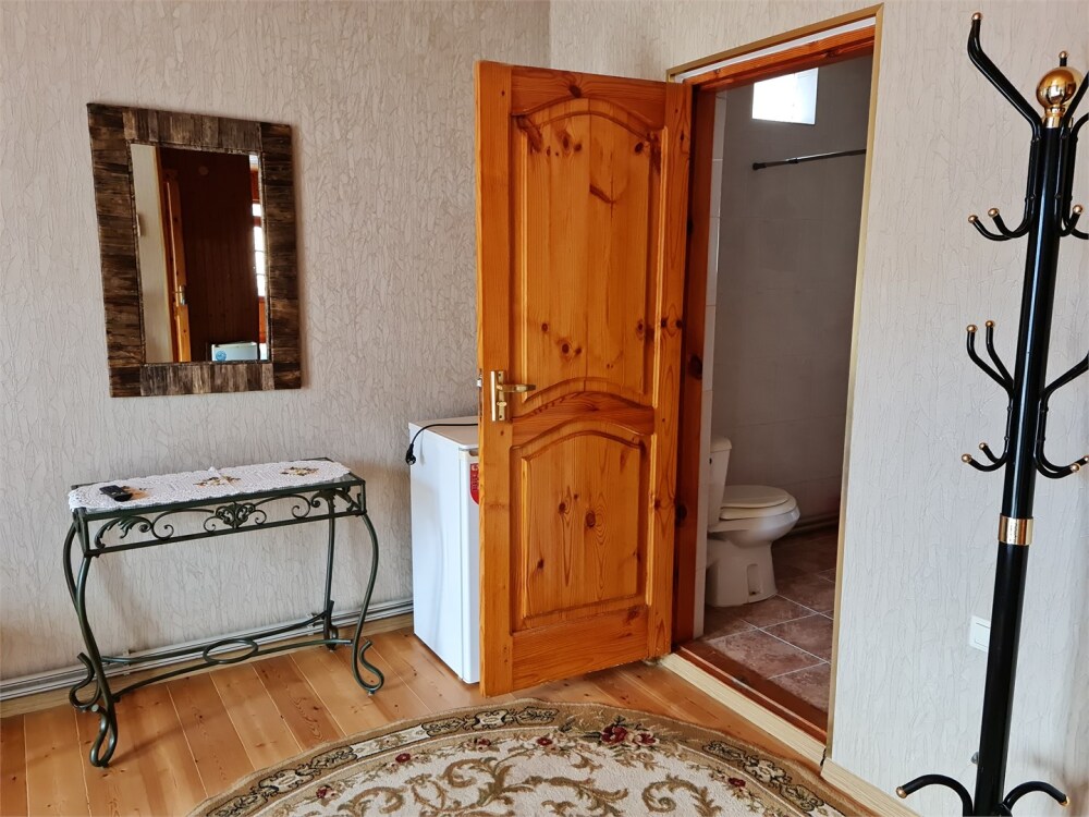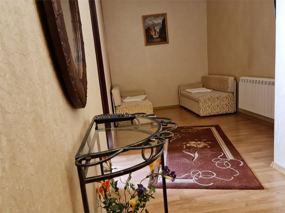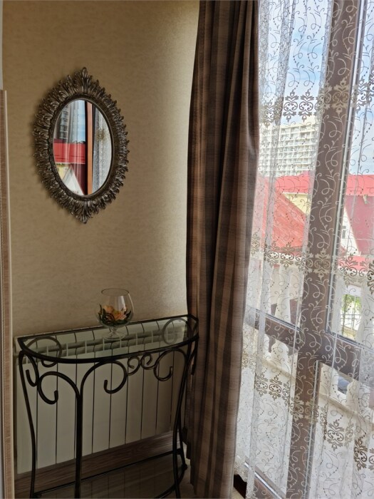 Номер расположен на первом этаже . В номере большая двуспальная кровать , косметический столик , Окна номера выходят во внутренний двор , вход в номер отдельный. Туалетная комната удобна и гармонична душевая туалетные принадлежности.