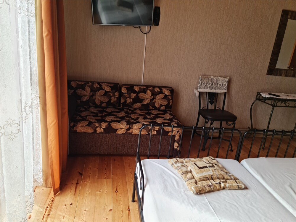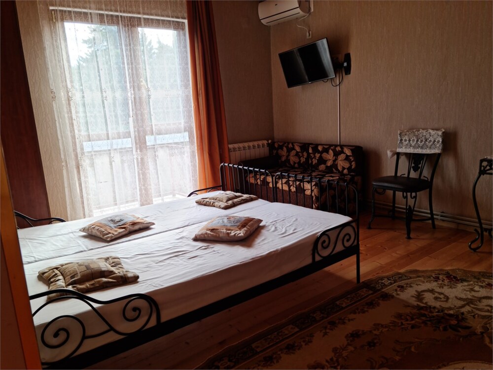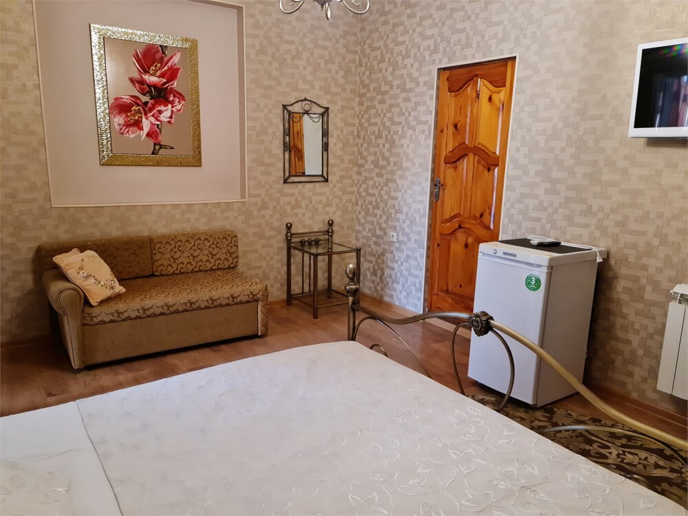 В номере большая двуспальная кровать , косметический столик , в удобный диван, Окна номера выходят во внутренний двор, большое преимущество номера балкон. Туалетная комната удобна и гармонична душевая кабинка, туалетные принадлежности. Один ребёнок до 6 лет — можно без отдельного спального места.