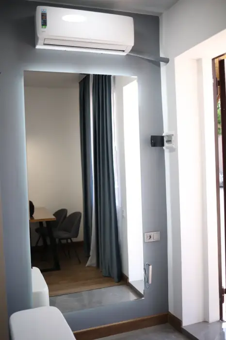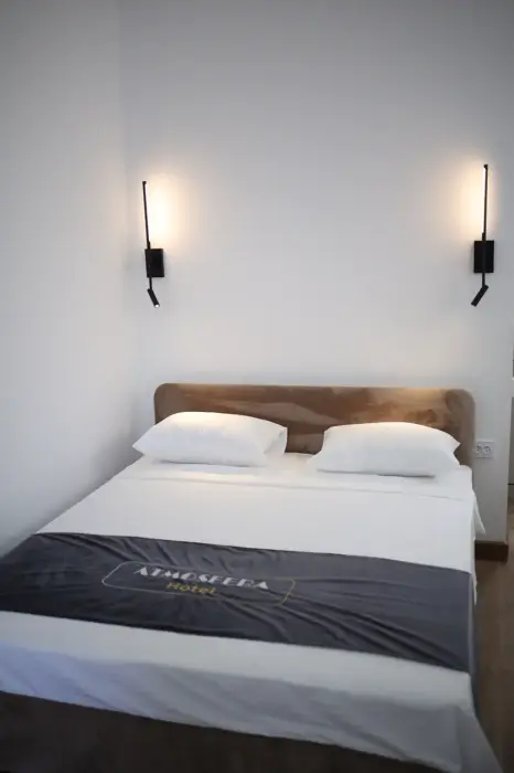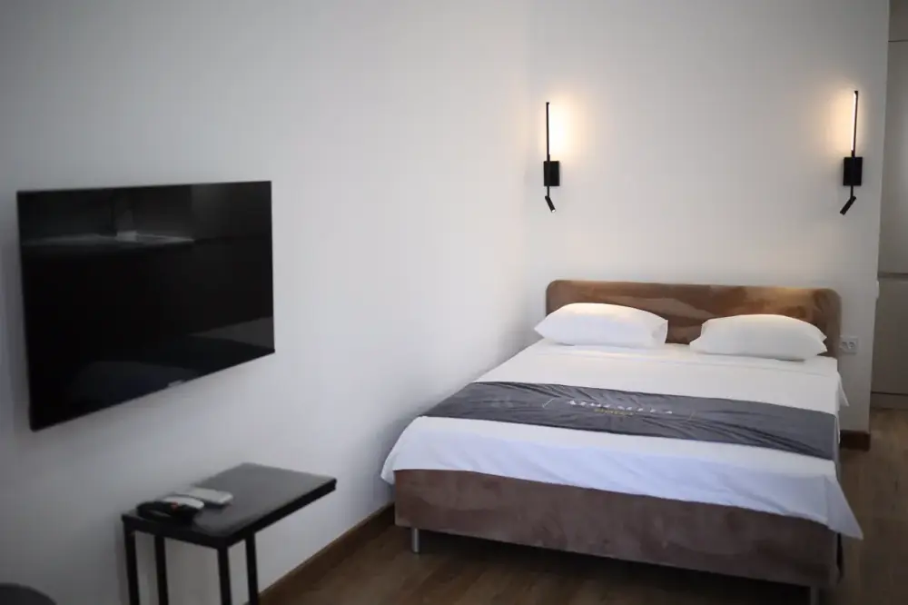 В номере двухспальная кровать, шкаф, холодильник, кондиционер, чайник, телевизор.
