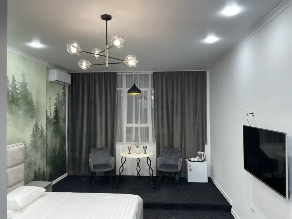 Для размещения гостям предлагают номера категории Люкс. Каждый номер оснащен кроватью, телевизором, холодильником, шкафом, собственной ванной комнатой. Предоставляются туалетно-косметические принадлежности. В некоторых номерах есть кухня.